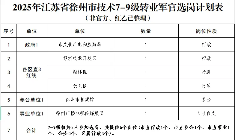 当然,政策总有例外,阳光也并非普照不到每一个角落。今天,我们就以2025年江苏省徐州市区的技术7-9级专业军官岗位表为例,看看这个城市是如何对待专业技术转业军官的。