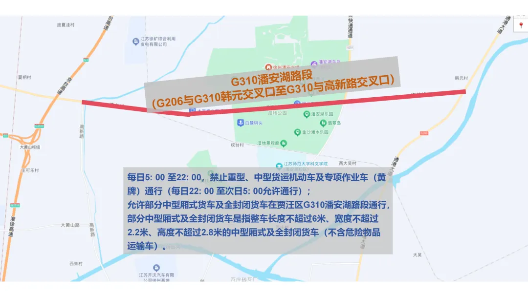 关于对贾汪区G310潘安湖路段实行交通限制的通告