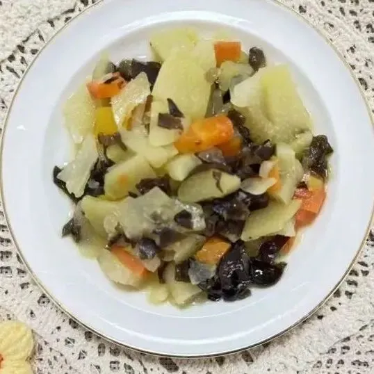 芥蓝甜椒木耳炒胡萝卜冬瓜竹笋母鸡汤