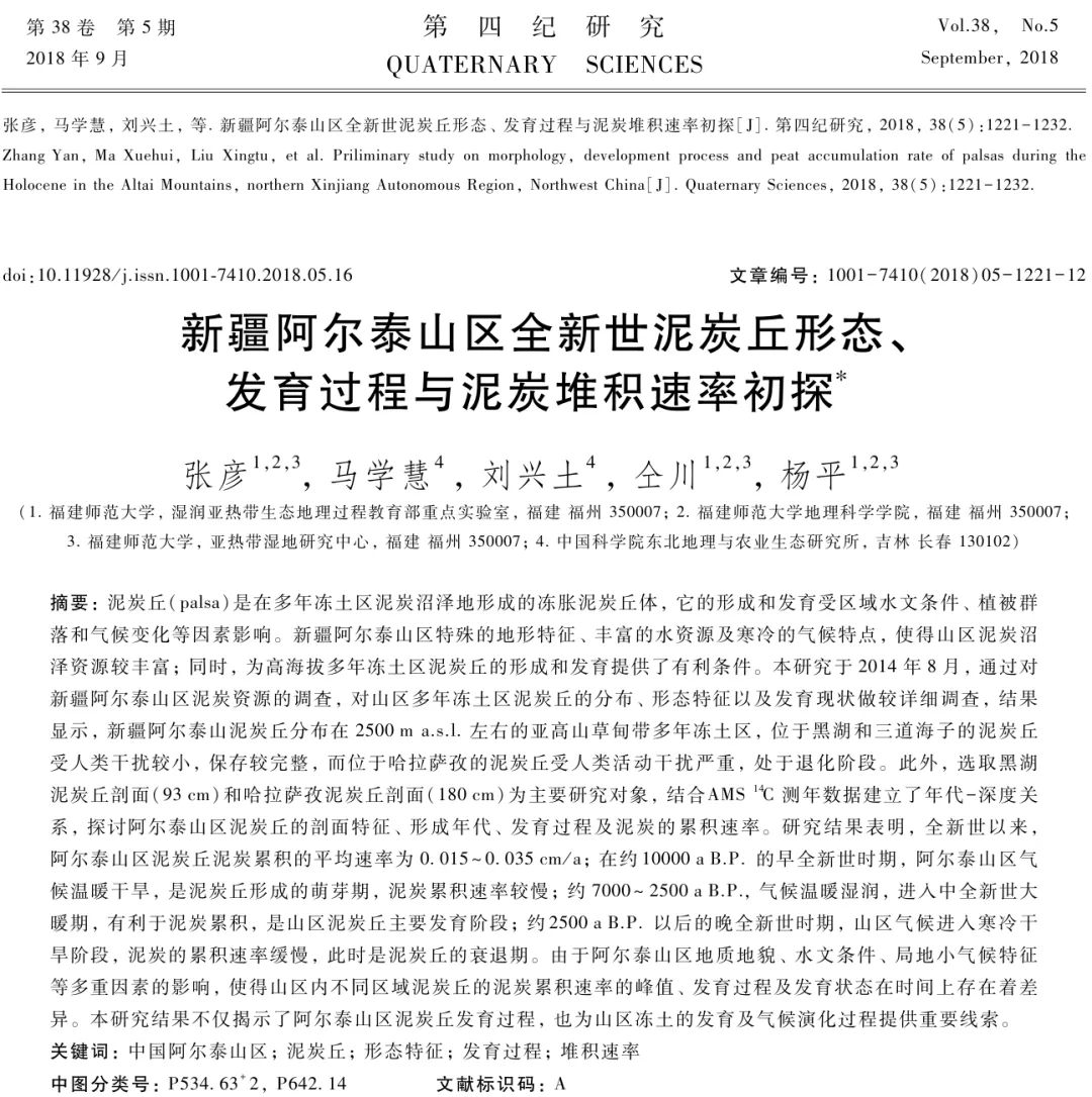 材料一:泥炭由未完全分解的植物残体堆积形成,吸水和固碳能力强。地处我国阿尔泰山东段南坡的三道海子地区(下图),海拔2400米,多年冻土内发育泥炭沼泽。该地区为古冰川侵蚀形成的U形谷,地下水丰富。