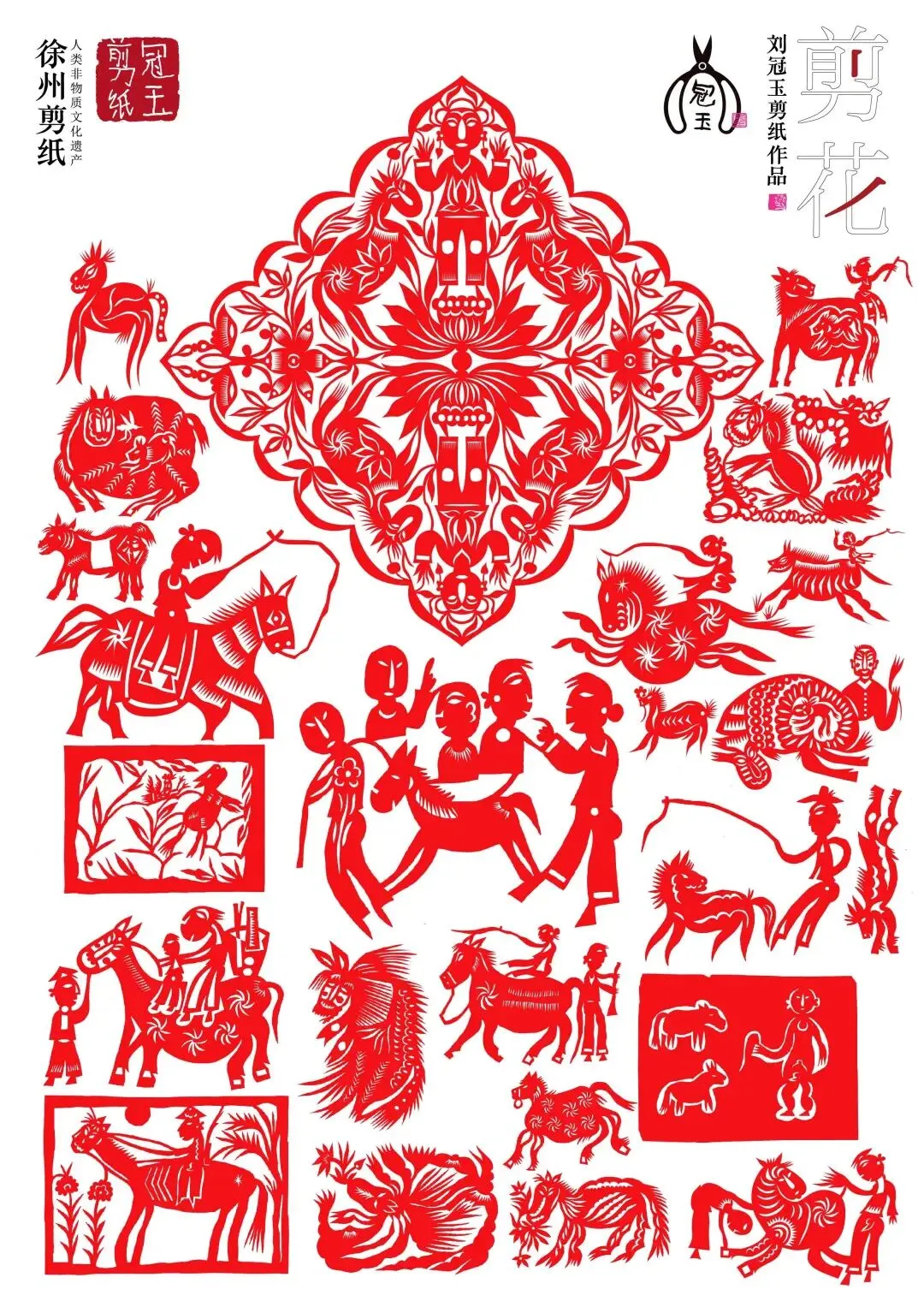 为迎接马年春节,第十七届中国民间文艺山花奖获得者、徐州剪纸非遗代表性传承人刘冠玉,潜心创作了《百马迎春》系列作品。其中包含了100幅以“马”为主题的剪纸,造型灵动,样式丰富,既沉淀着非遗艺术的文化底蕴,又融入了创新设计的鲜活气息。
