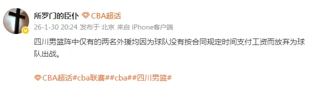 1月30日晚,据媒体人“所罗门的臣仆”在个人社媒透露,四川男篮阵中仅有的两名外援庞兹和加克因为球队没有按合同规定时间支付工资而放弃为球队出战。本赛季开赛前,四川陷入欠薪风波,险些无法参加本赛季的比赛,最后靠质押全部股权才暂时解决欠薪问题惊险获得CBA准确入资格。赛季初四川男篮一直是以全华班出战,未尝一胜。随后不知道用了什么方法,于12月份先后签下了外援庞兹、加克。此后二人分别代表四川男篮出战了11场、13场,球队同样还是一胜难求,并且均是惨败收场。同时,媒体人“所罗门的臣仆”还透露,两个外援自签约四川男篮,为球队出战至今还一毛钱工资都没有收到过。对于四川男篮和两位外援,只能说,一个敢签,另一个也真的敢来。而在今晚进行的四川男篮客场对阵南京同曦的比赛中,四川队只能再次以全华班出战。最终比赛也如此前输掉的每场比赛一样毫无悬念,从一开始南京就一路领先,分差越拉越大,最终南京104-72大胜四川。四川男篮遭遇21连败,本赛季未尝一胜。值得一提的是,在比赛最后时刻,分差已经来到33分,胜负已分,倒数第二回合南京球权,选择压完24秒放弃进攻违例。最后一回合四川球权,四川球员左朕年在最后时刻尝试投了一个三分,结果这一举动激怒了已经放弃防守的南京球员马鑫鑫和赵柏清,随后三人发生肢体冲突,左朕年一把将马鑫鑫推倒在地。裁判看了回放之后,三人均被驱逐出场。不知道为什么,这个小插曲双方情绪会如此激动。可以想象的是四川这帮球员已经输球输得麻木了,甚至可能还没领到工资,自身带有火气是正常的,而且自己是落后方,投一个就投一个能怎么样。而南京方面,按照江湖规矩,胜负已定的情况下,我放弃进攻防守,你也应该放弃进攻防守,否则就是不尊重球场默契,也说得过去。本赛季的四川男篮虽然保住了CBA的参赛资格,但是资金链的问题始终是没有能够解决。此前1月21日,据媒体曾报道,四川男篮暂时获救,经四川省体育局协调,四川男篮此前通过质押股权的方式向四川省篮协借款,用于偿还球员欠薪和本赛季的运营,为此,俱乐部股权已全部质押。而仅仅过去5天之后的1月26日,四川男篮持有的CBA公司5%股权便被法院冻结,冻结期限为三年,冻结权益数额为300万元人民币。如今又发生外援因被拖欠工资而罢赛的丑闻,可以想象目前四川男篮的资金已经紧张到什么程度。可以说,本赛季的四川男篮存在的意义,就是为了保住CBA的参赛资格而苟延残喘地活着,至于成绩、竞争,早已经跟他们没有任何关系了。1月29日四川男篮的官方账号还发布了一则信息,此前在四川主场的比赛中突然闯进比赛场地的猫,广受球迷网友关注,如今经过球队工作人员5天的寻找,已经被找到了,而且还是3只。这则信息表示,后续俱乐部将对这3只流浪猫进行妥善安排,帮助寻求合适的爱心家庭进行收养。如今,CBA第一阶段还有4天就结束了,艰难度日的四川男篮,也应该利用好这个间歇期,想想怎么妥善安排球员,怎么为球队寻求合适的出路了。