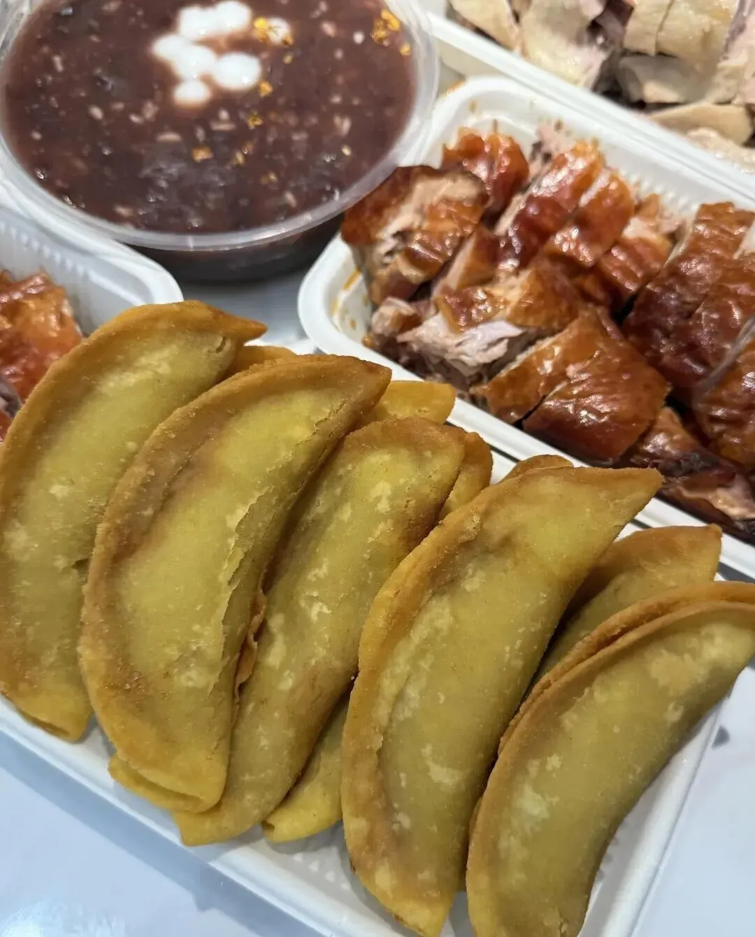 鸭油烧饼酥得掉渣 , 满嘴都是鸭油的香 , 配粉丝汤绝了。