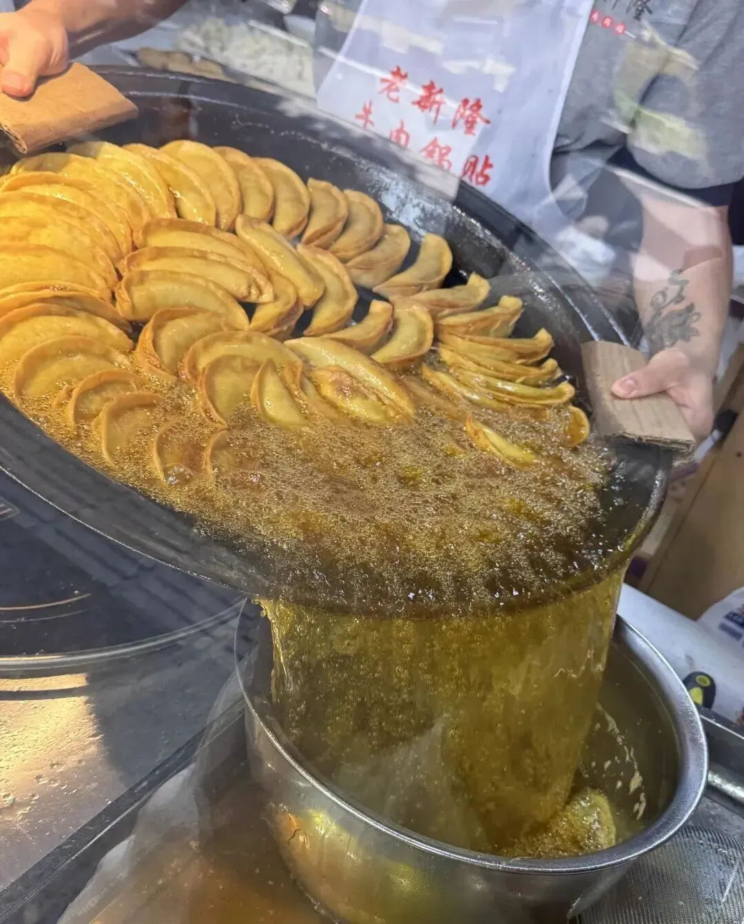 先说锅贴 , 底子煎得焦焦脆脆的那种 , 一口咬下去咔嚓响 , 肉馅还带汁儿 , 这个必点。