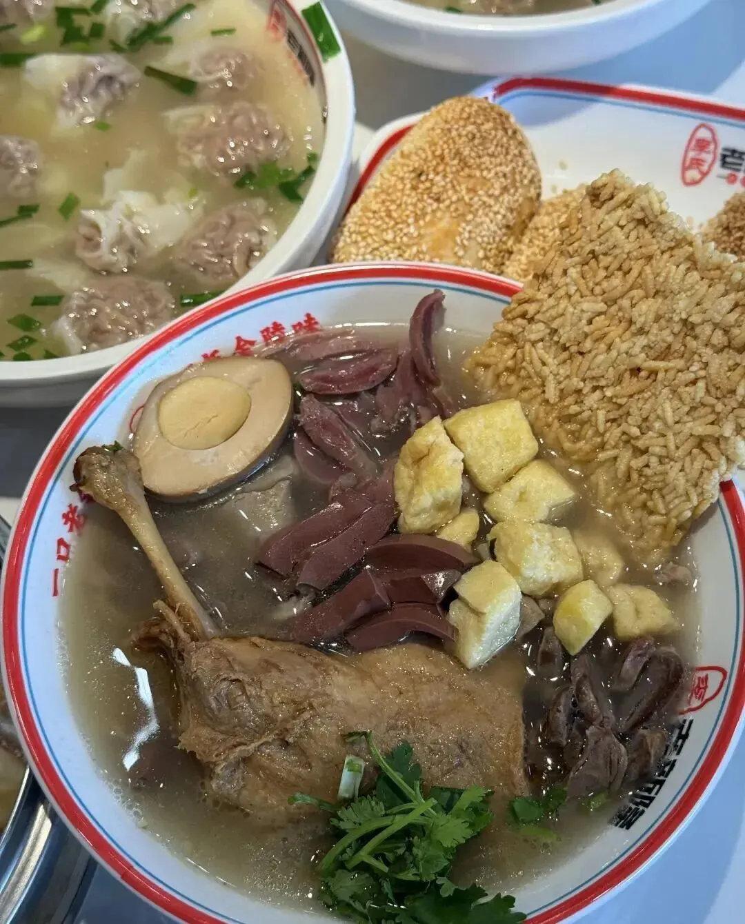 鸭血粉丝就不用多说了吧 , 来南京不吃这个等于没来 , 鸭血嫩、粉丝滑、汤鲜 , 配料给得也实在。