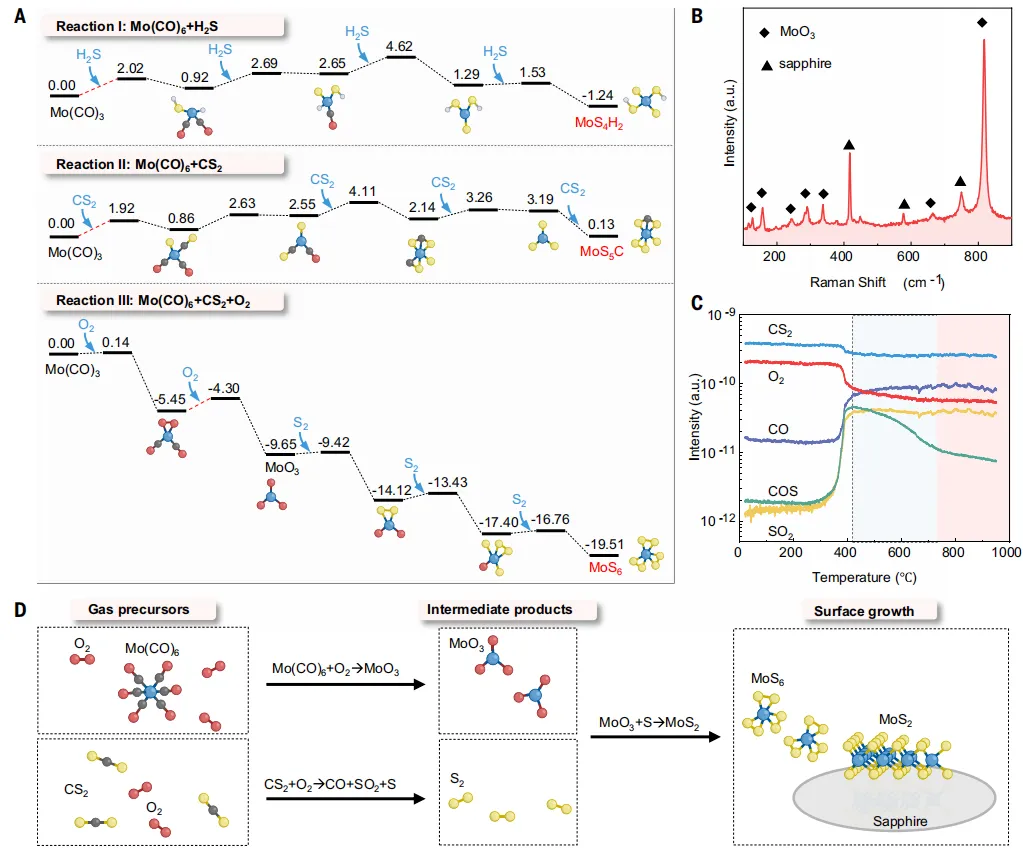 图1. 二硫化钼通过oxy-MOCVD和常规MOCVD的生长动力学