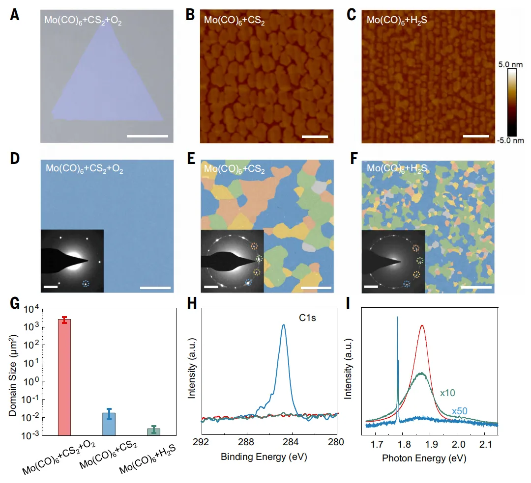图2. 通过oxy-MOCVD和常规MOCVD生长的二硫化钼