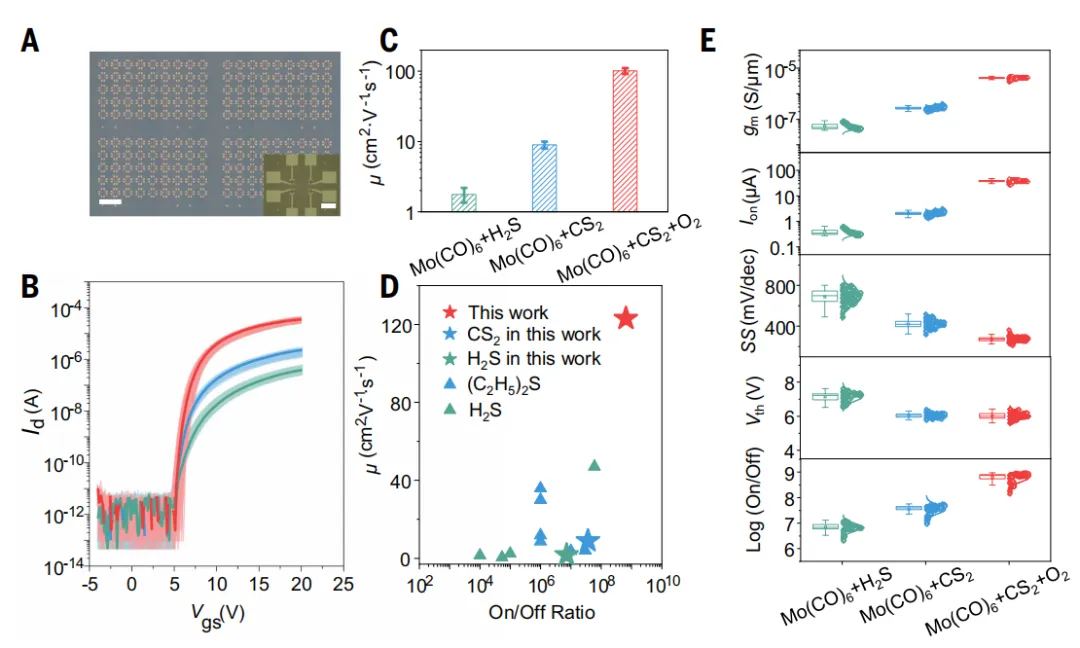 总之,研发的氧辅助金属有机化学气相沉积技术,成功实现了150毫米高质量单晶二硫化钼晶圆的制备。通过深入分析生长动力学机制,并在金属有机前驱体预反应中引入氧气,该技术获得了定向排列、无碳污染的二硫化钼材料,其电学性能表现卓越,远超传统金属有机化学气相沉积技术的局限。这项工作不仅揭示了生长动力学的关键作用,更为二维半导体的工业化规模生产奠定了技术突破性基础。