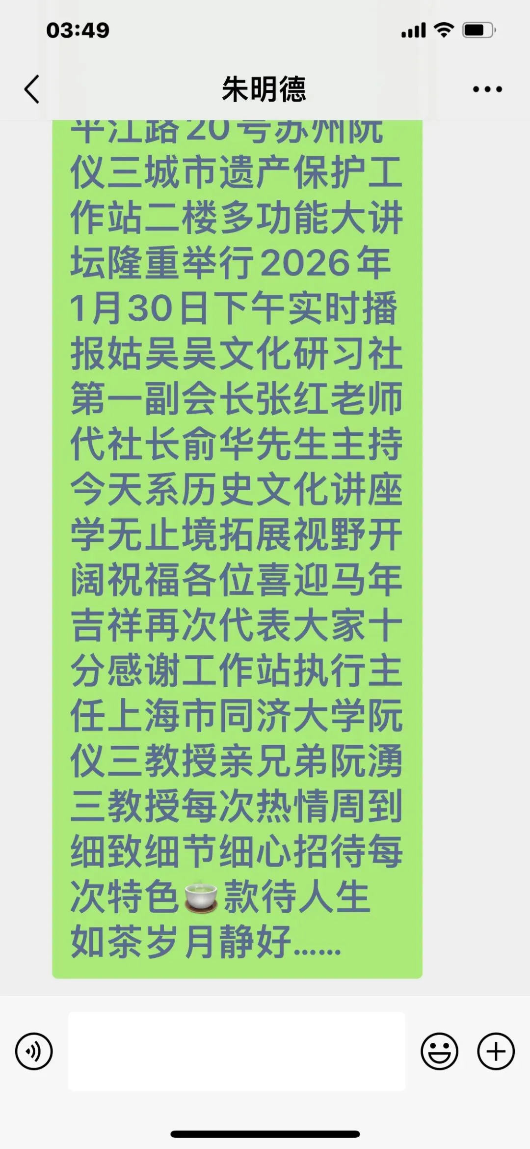 2026年1月30日参加苏州市平江路20号阮仪三城市保护工作站的城市与建筑讲座互动交流活动!