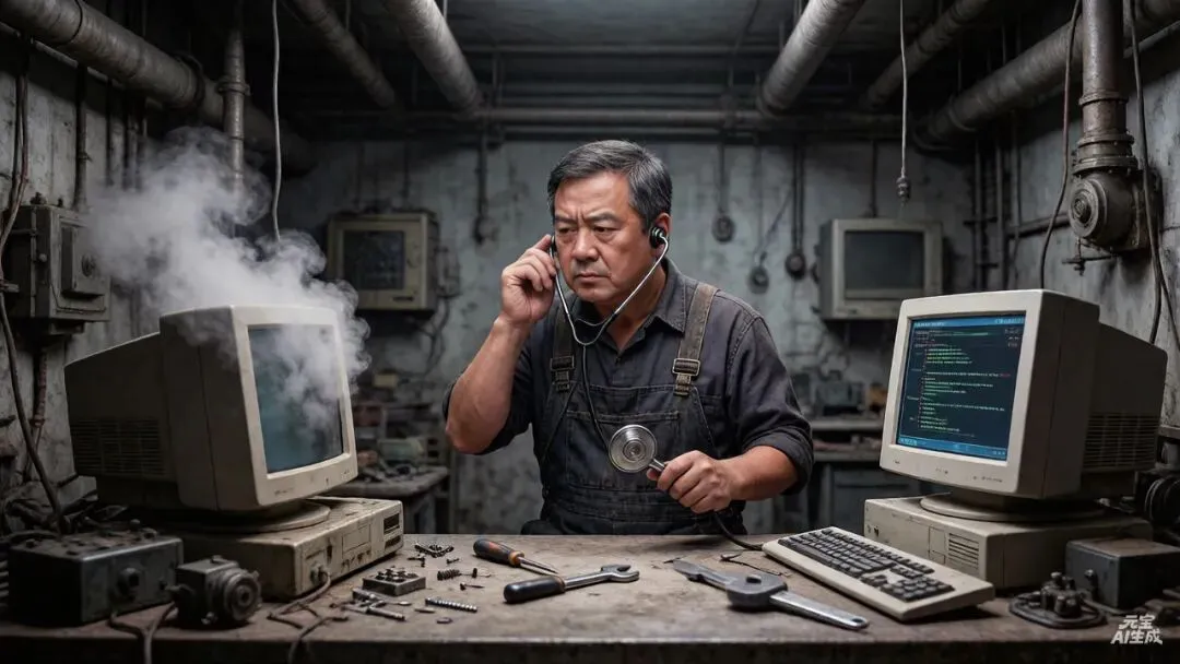 元启睁眼时,车间还是熟悉的布局,年轻的我正蹲在发烫的机柜旁,手掌贴着机箱外壳反复摩挲,额头渗着薄汗。它不解地扫描我的动作——人类的手掌感知精度远不及传感器,为何这位厂长要依赖如此“原始”的方式?它立刻上前汇报:“厂长,监控显示机柜温度78℃,超过阈值13℃,数据库显示大概率是散热风扇故障。”