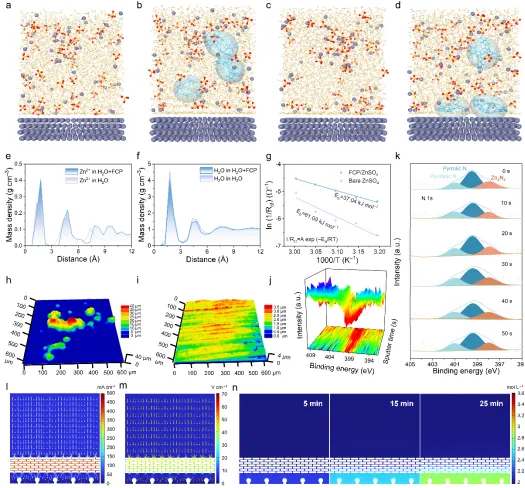 传统硫酸锌(ZnSO4)中形成的SEI层由于其单组分(无机物质)特性,常常存在离子导电率差和结构不均匀性,在循环过程中容易开裂或分层。这导致SEI持续增厚、内阻增加、电解质耗尽和容量衰减。由FCP衍生出的富Zn3N2的无机-有机复合SEI层利用无机组分的高刚性和强度,有效抑制树突生长,而有机组分则提供足够的灵活性,以适应Zn2+电镀/剥离过程中体积的变化。显著加快了Zn2+的传输速度,缓解了浓度极化现象,并显著提升了循环稳定性。