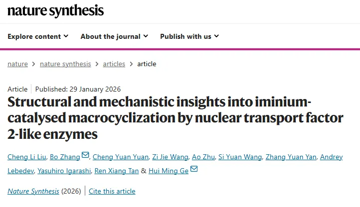 本研究阐明了一种亚胺离子催化的串联环化机制,拓展了NTF2样酶已知的催化范围,并凸显了亚胺离子介导的生物催化在天然产物生物合成中的潜力。