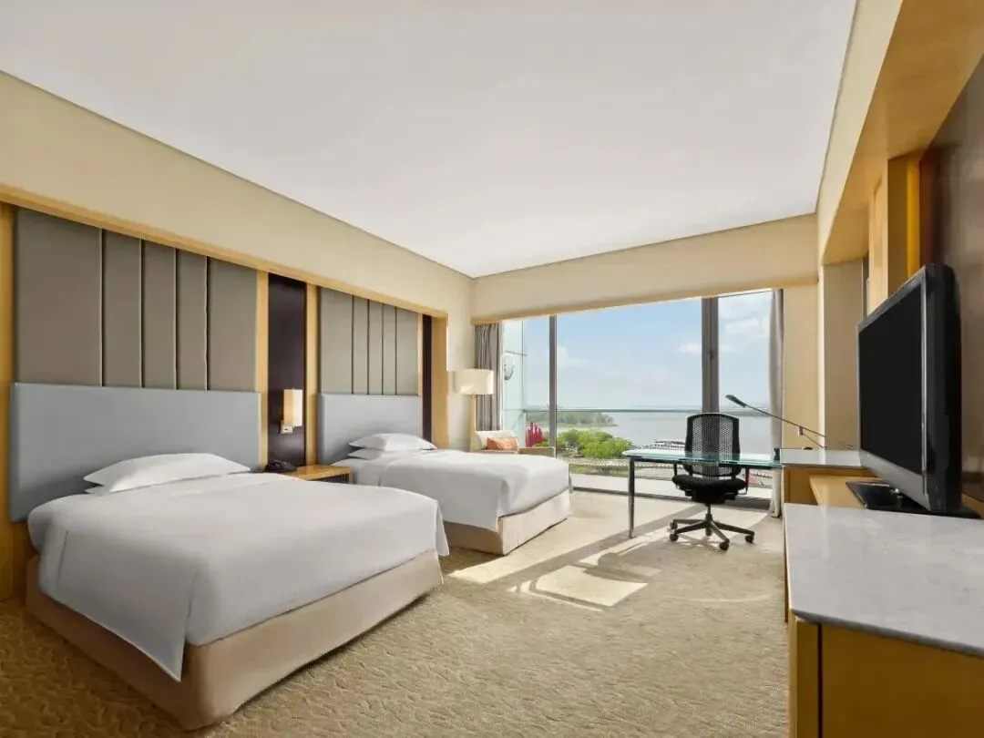 酒店共拥有398间客房/套房,呈弧形立于扬子江畔。设有基础房、江景房、行政房、亲子房、套房等多类房型,可满足不同的入住需求。
