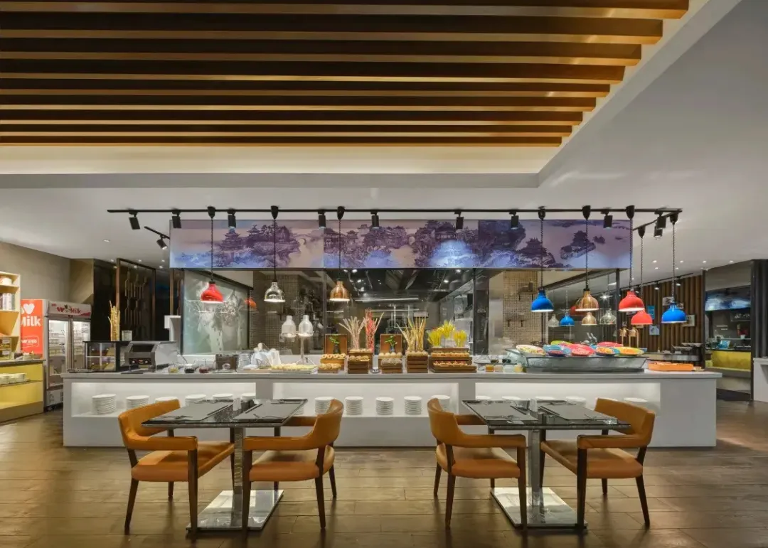 悦河咖啡厅,提供全天候国际美食,自助早餐在这里享用。自助早餐,中西式料理,精致且美味!南京本地特色:鸭血粉丝、小馄饨都有,满足一家老小不同味蕾。自助晚餐