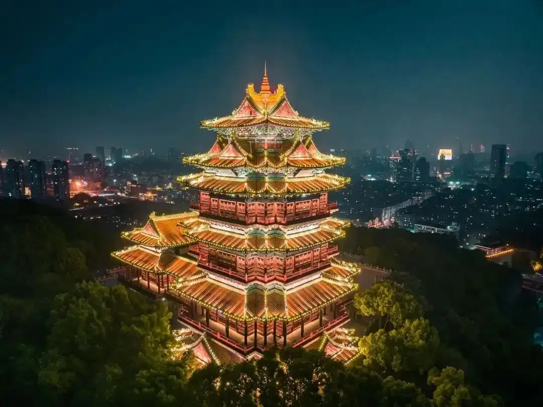 南京阅江楼位于长江南岸的狮子山巅,护城河环绕着狮子山。阅江楼仿明代建筑,红色的柱子,金色琉璃瓦覆顶,鲜艳夺目。登上阅江楼远眺,浩瀚的长江风光一览无余,令人心旷神怡。