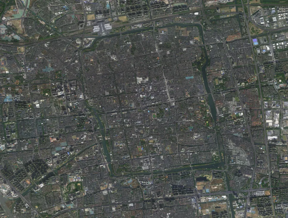 昆山(虽属苏州代管但实为一体)的产业带与上海安亭汽车城无缝衔接,在卫星图上形成连绵的建成区,这是长三角一体化最生动的空间证据。
