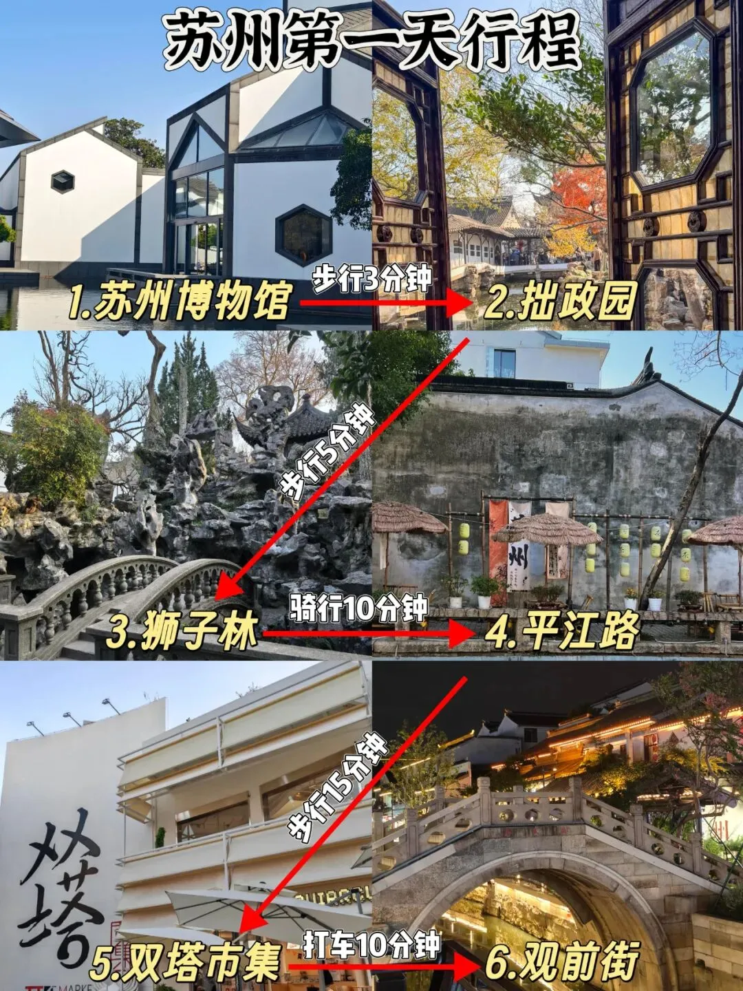 ✅ 步行/骑行:古街区适合步行,景点间短途(如拙政园到狮子林)骑共享单车,灵活自在。