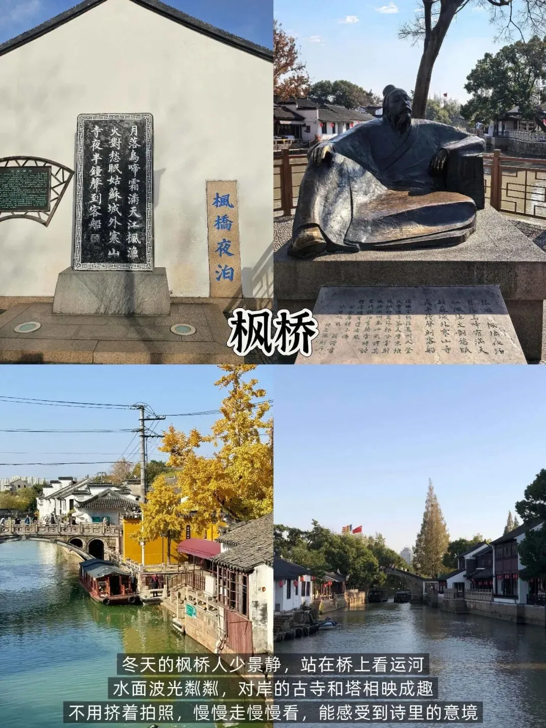 📍 枫桥(紧邻寒山寺):因“枫桥夜泊”闻名,河水潺潺、古建错落,感受诗中意境,免费顺路打卡即可。