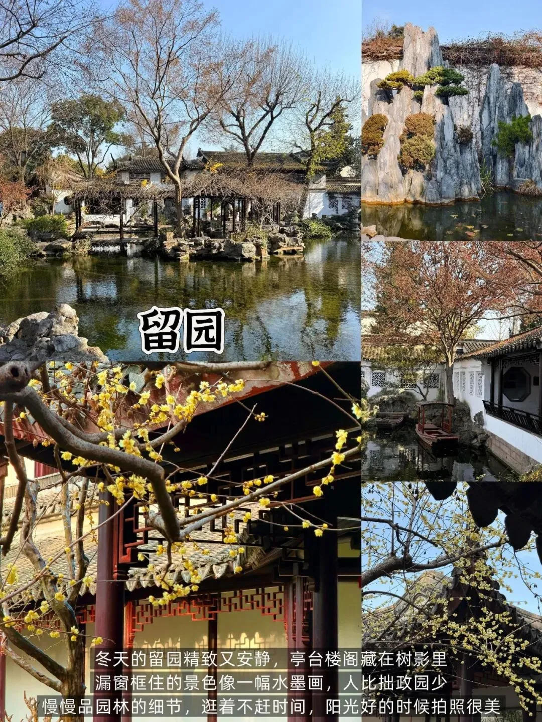 📍 留园:四大名园之一,小巧精致,冬季人少可细品,漏窗映冬景,门票40元,慢逛感受园林精巧。