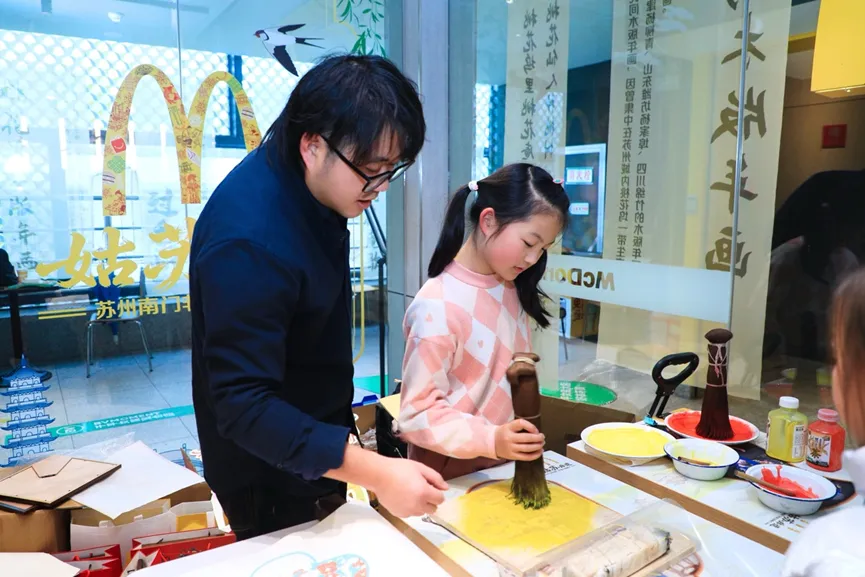 昨日,麦当劳江苏首家非遗主题餐厅落户在苏州南门餐厅,并正式推出“祝你今年金拱门” 年画新春非遗主题派对活动。活动期间,市民通过预约可在享用美食的同时,了解非遗的前世今生,并且亲手体验桃花坞木版年画的非遗工序,创作专属的主题年画。