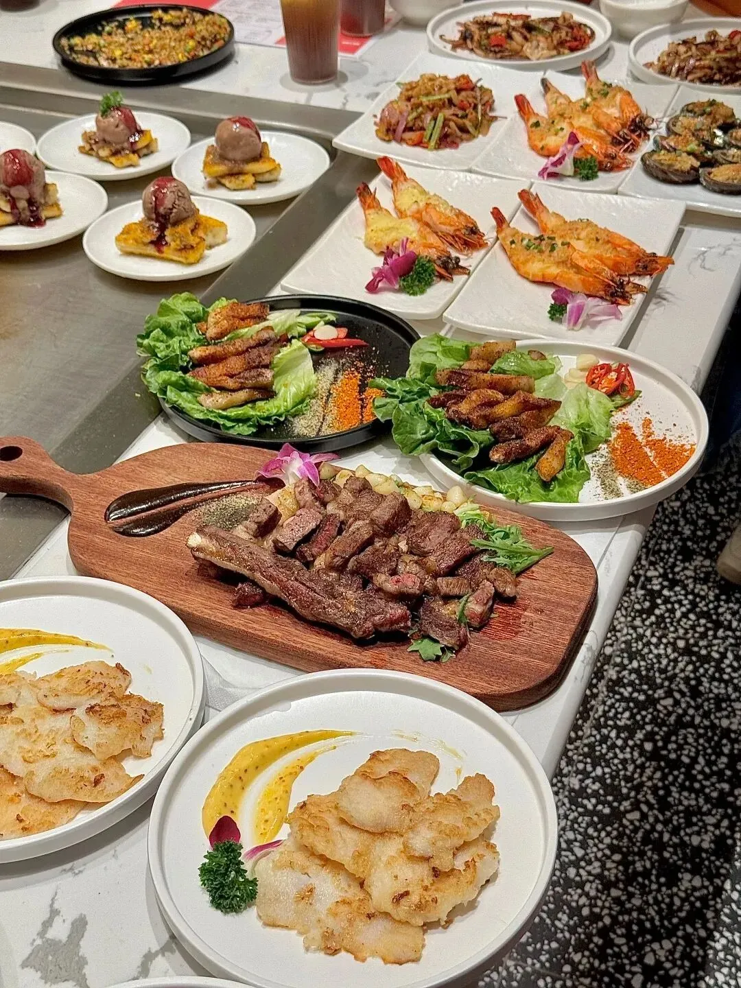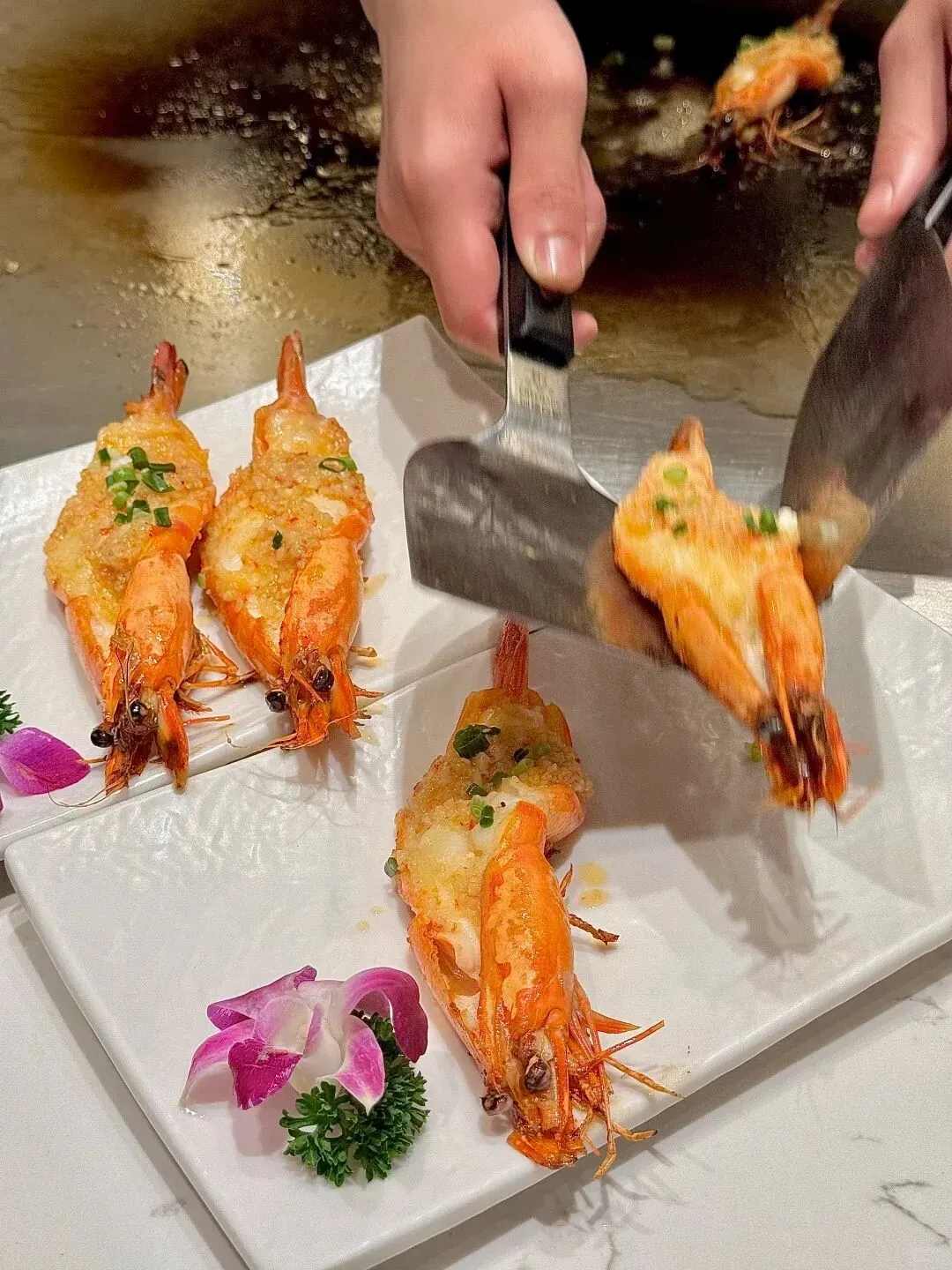 坐在吧台位,近距离观摩主厨的操作,本身就是一种极佳的视觉享受。新鲜的海鲜、厚实的和牛在铁板上滋滋作响,油脂的焦香混着秘制酱汁的味道四溢开来,瞬间就能勾起心底最原始的食欲。