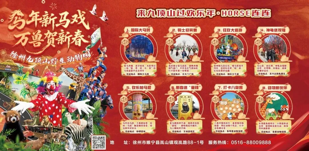早上指定时间地点集合,乘车前往徐州市睢宁岚山镇,徐州市睢宁县岚山镇九顶山山脉,依山傍水,独具自然风貌优势。徐州九顶山野生动物园总投资20亿元,作为徐州市重点文旅项目,她以丰富山水的优势资源为依托,打造集动物观赏、剧场演出、项目体验、休闲观光和科普教育为一体的沉浸式综合度假区。