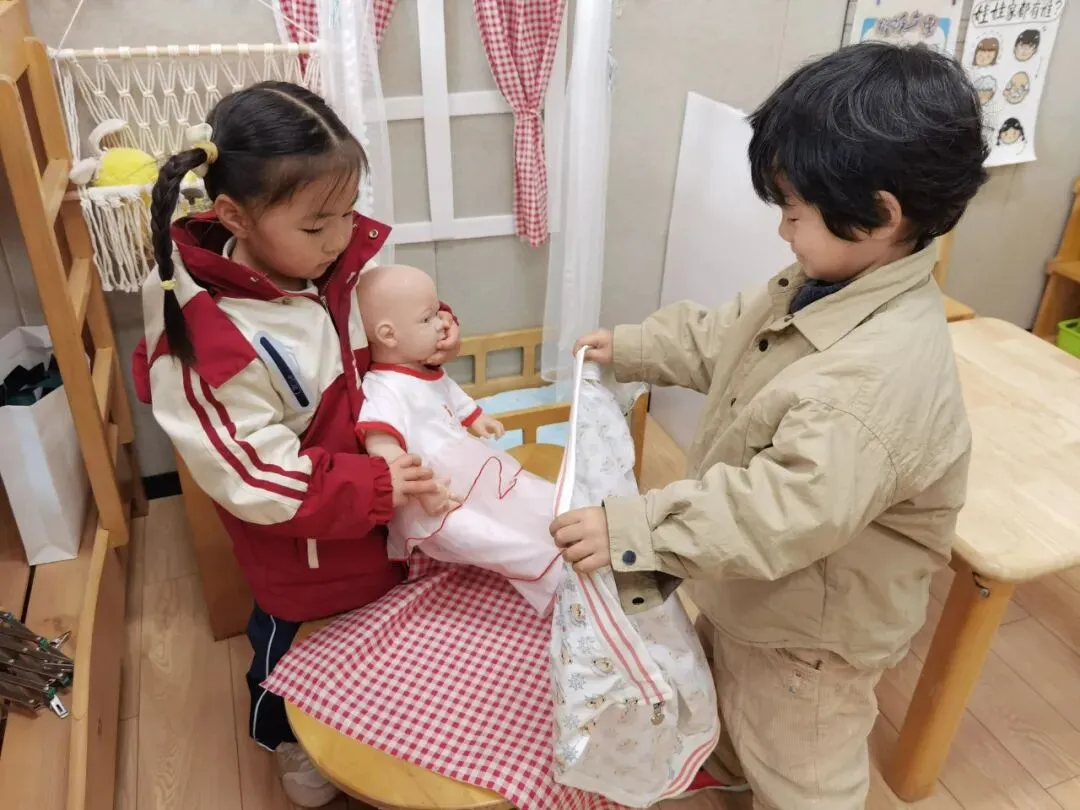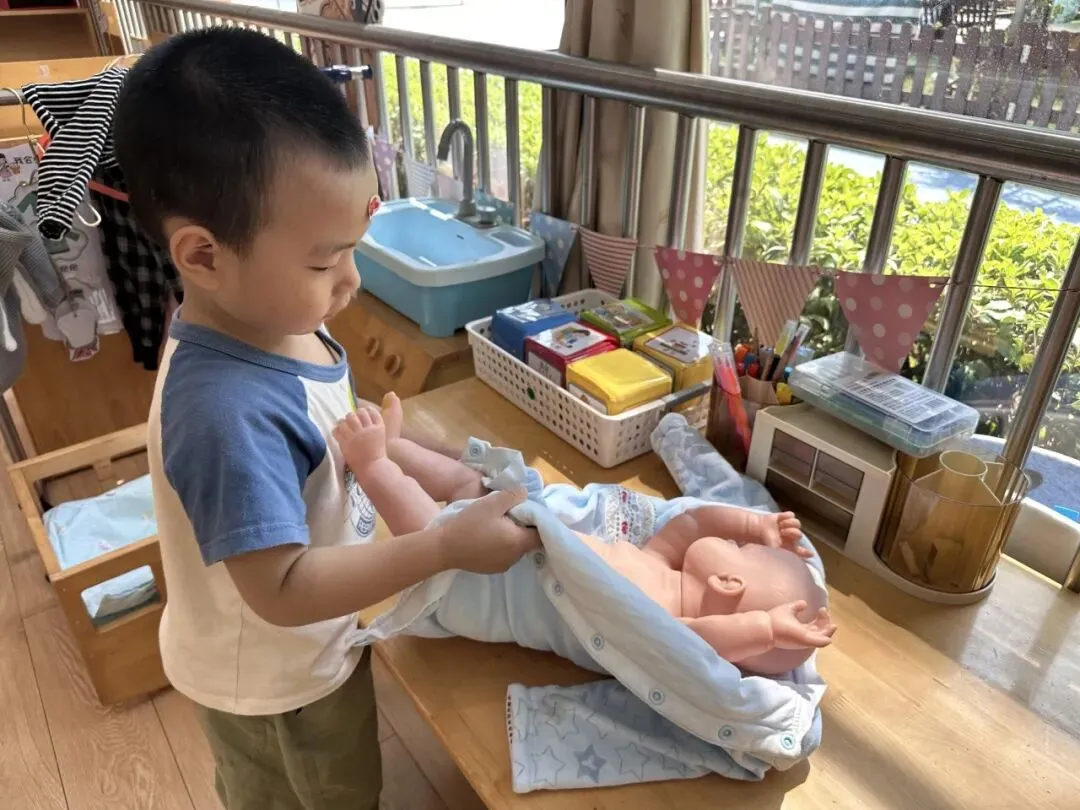 我当妈妈时,会用心地给我的宝宝穿好衣服。