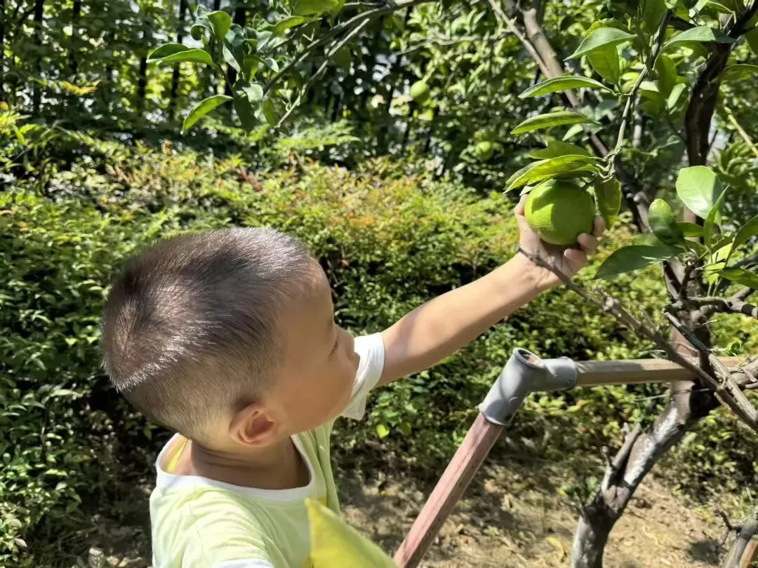 我在花果园观察植物,这里有橘子树、银杏树、桂花树等等。