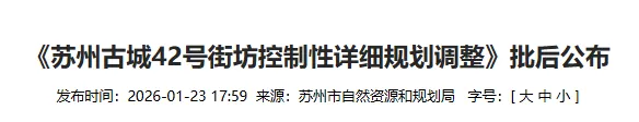 《苏州古城42号街坊控制性详细规划调整》批后公布