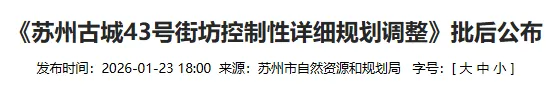 《苏州古城43号街坊控制性详细规划调整》批后公布