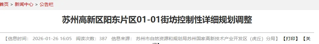 苏州高新区阳东片区01-01街坊控制性详细规划调整