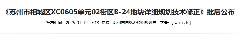 《苏州市相城区XC0605单元02街区B-24地块详细规划技术修正》批后公布