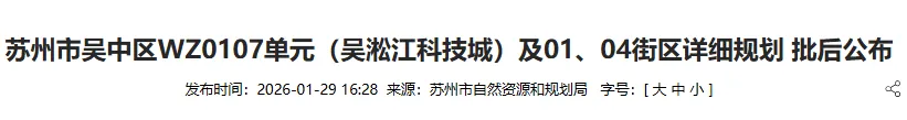 苏州市吴中区WZ0107单元(吴淞江科技城)及01、04街区详细规划 批后公布