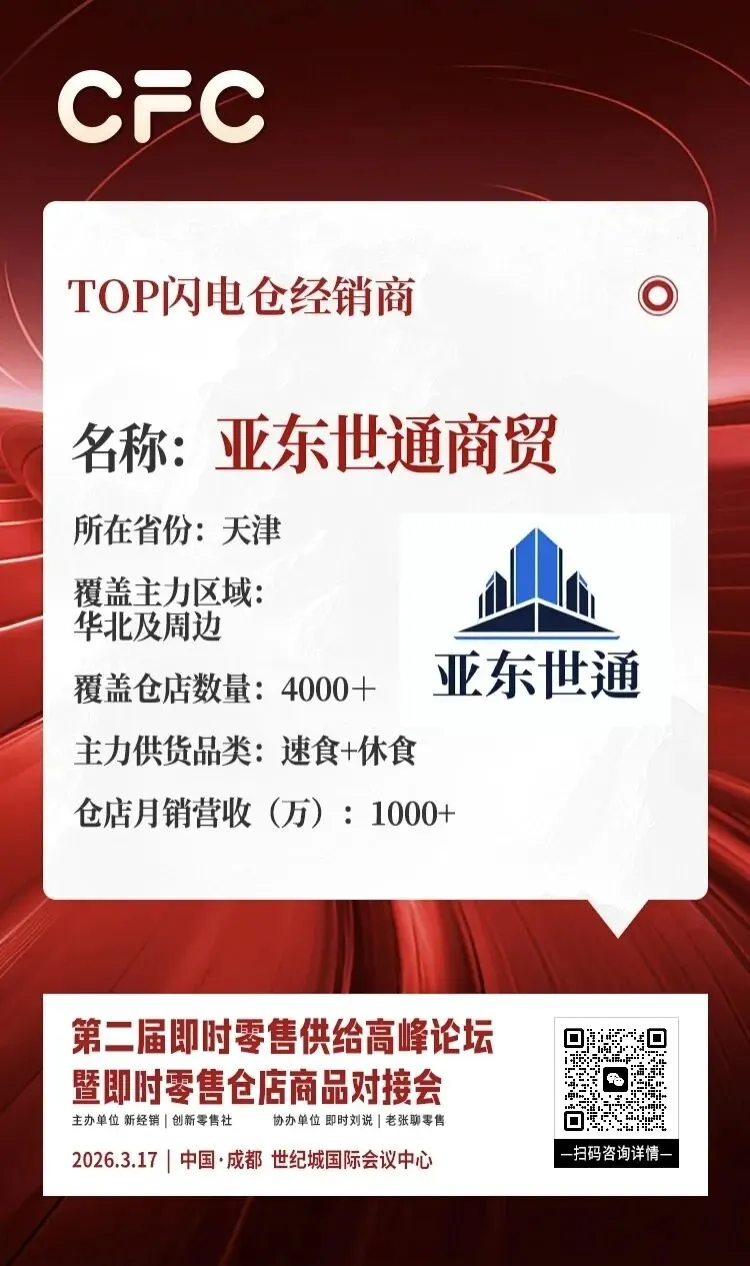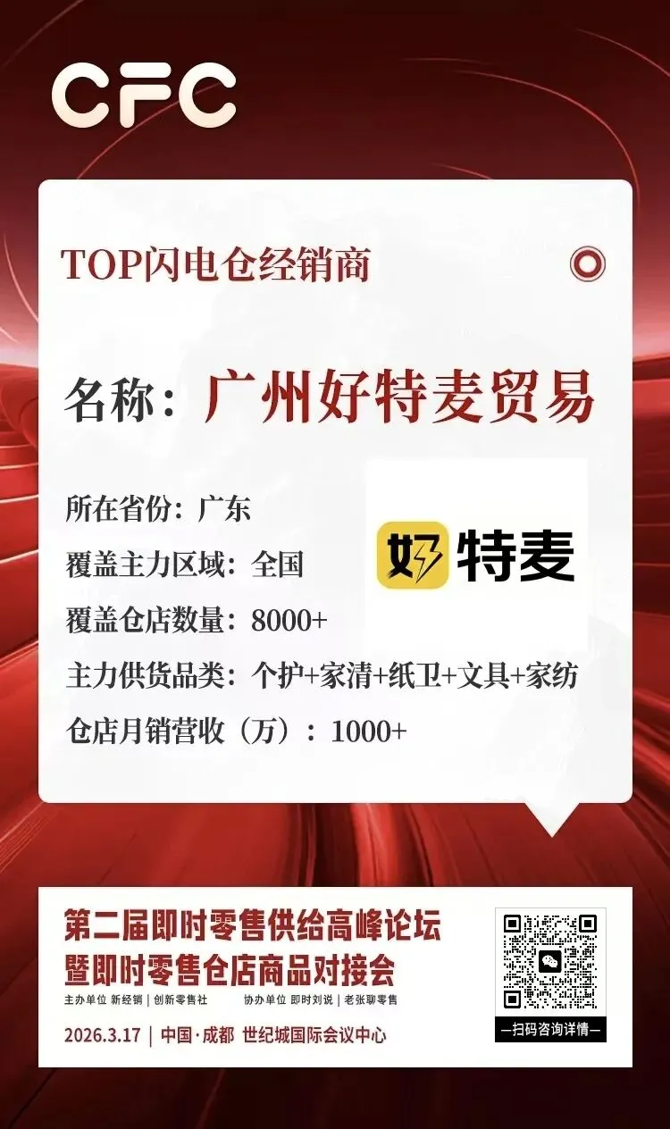 2026年3月17日,成都,我们将举办「CFC 第二届即时零售供给高峰论坛暨即时零售仓店商品对接会」。