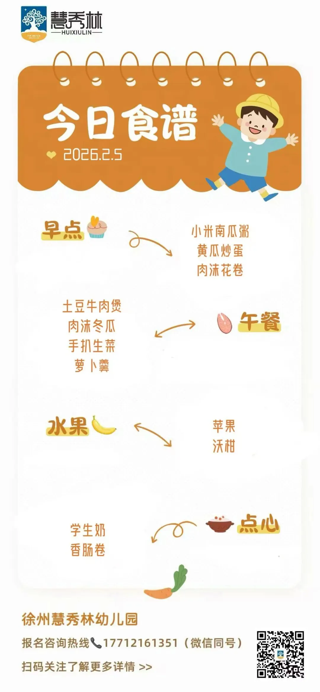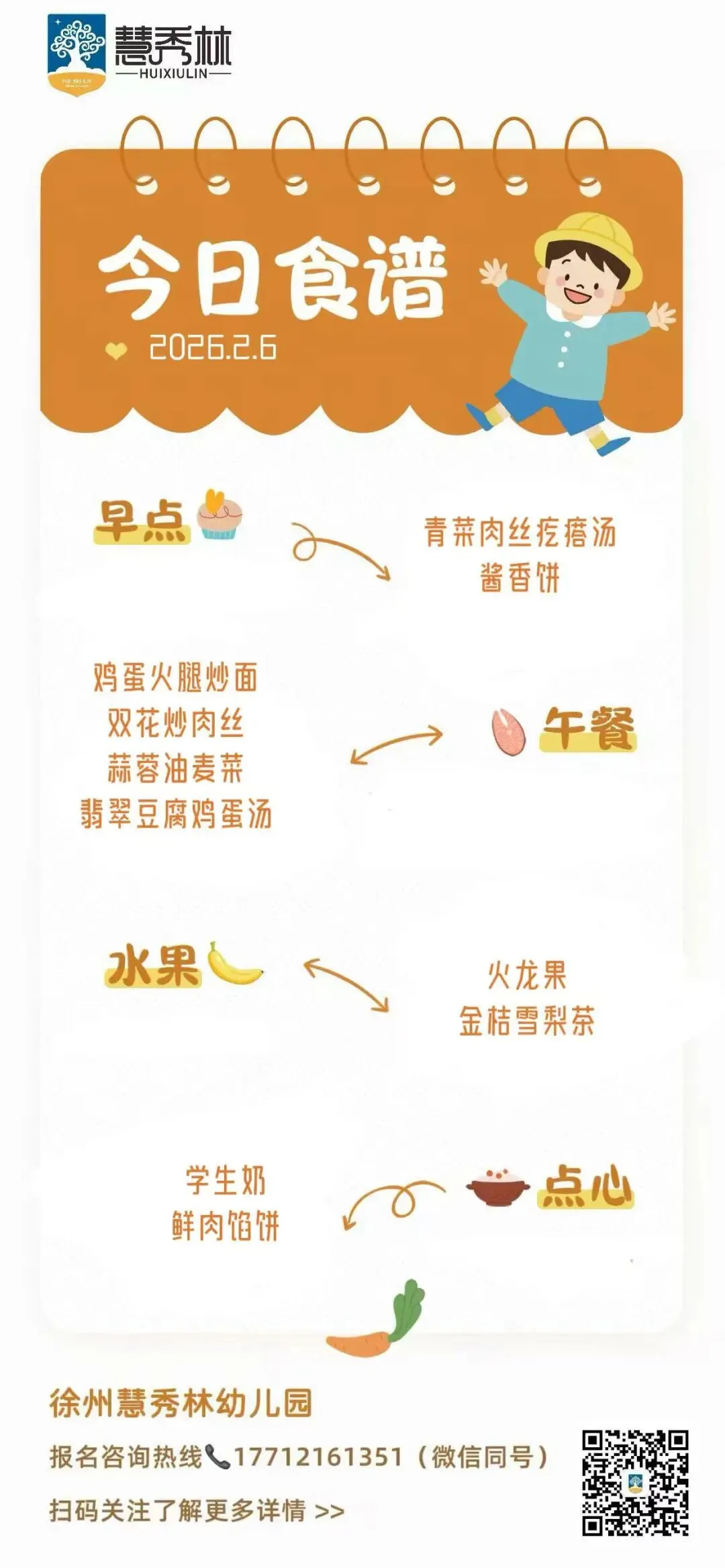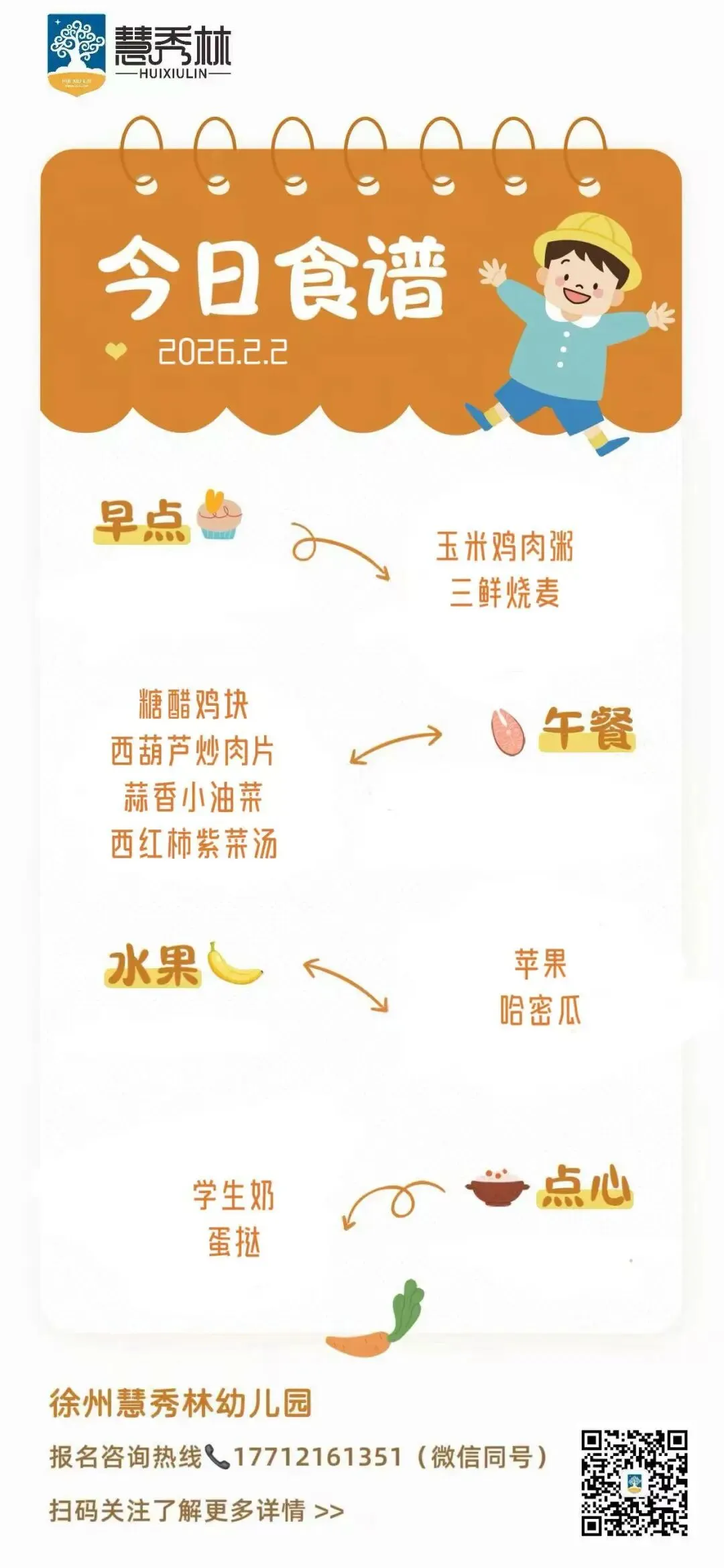 【美食美刻】丨徐州慧秀林幼儿园每周食谱(2月2日——2月6日)