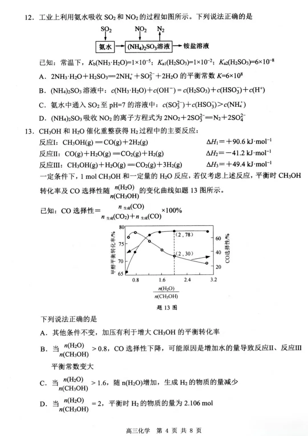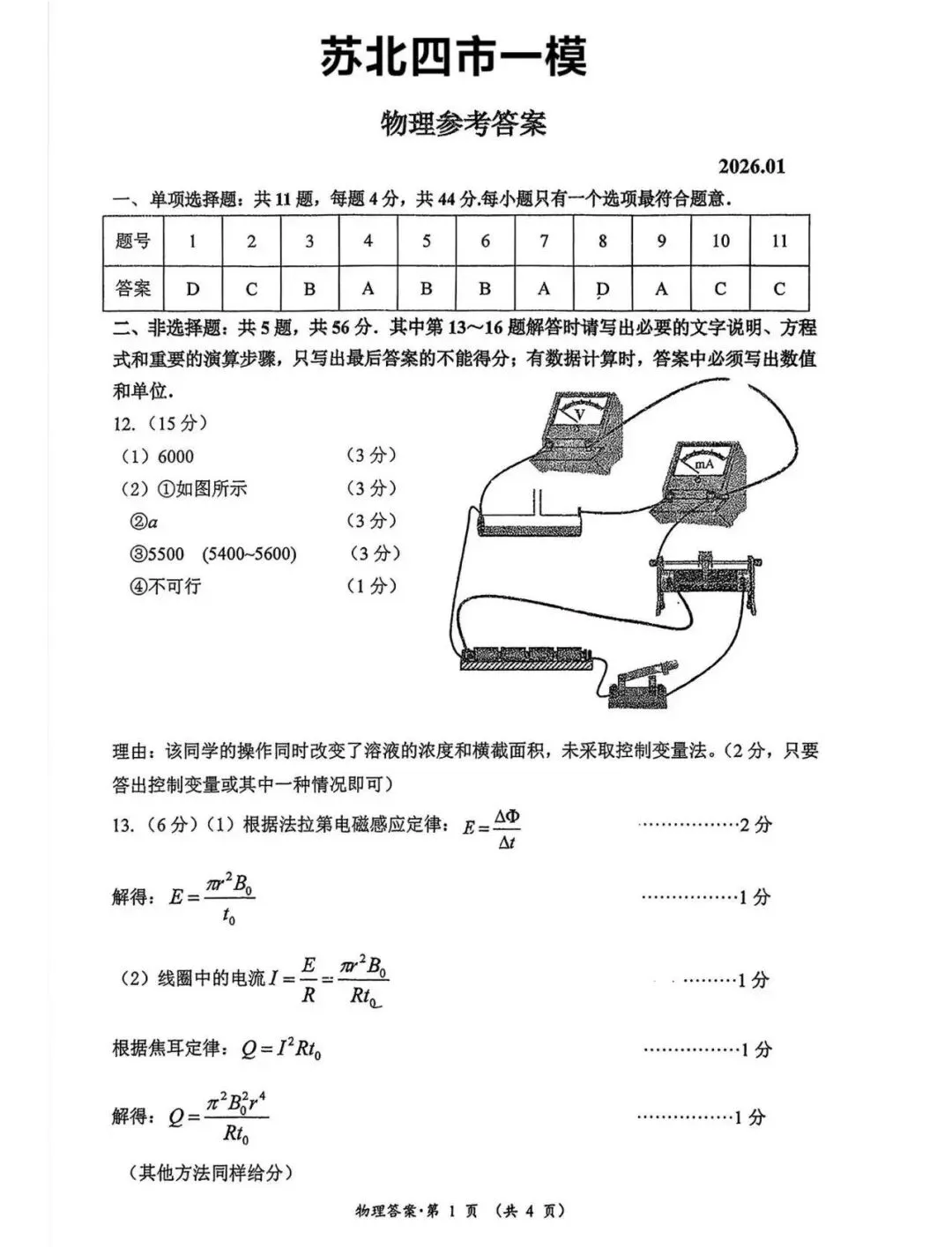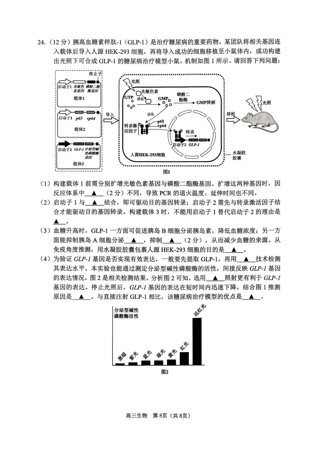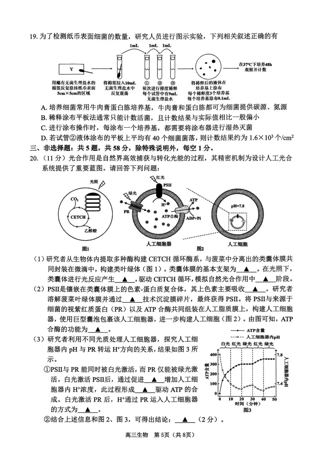 >【高三一模】26届徐州高三一模物理&化学&生物试卷+答案