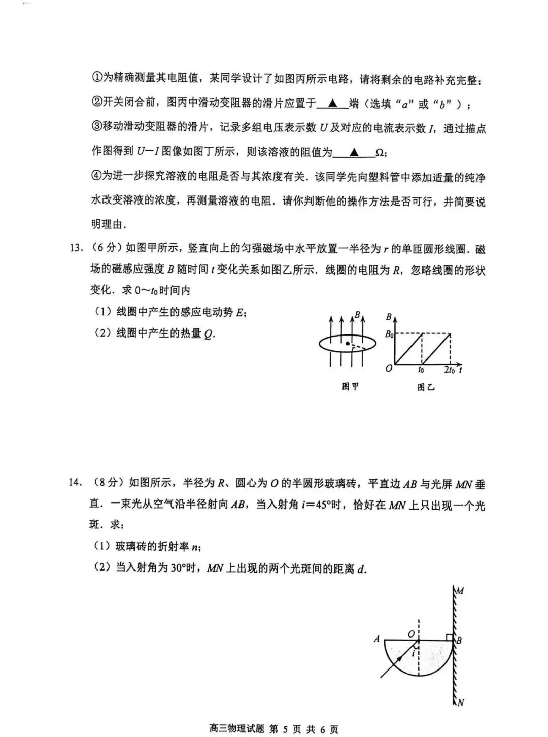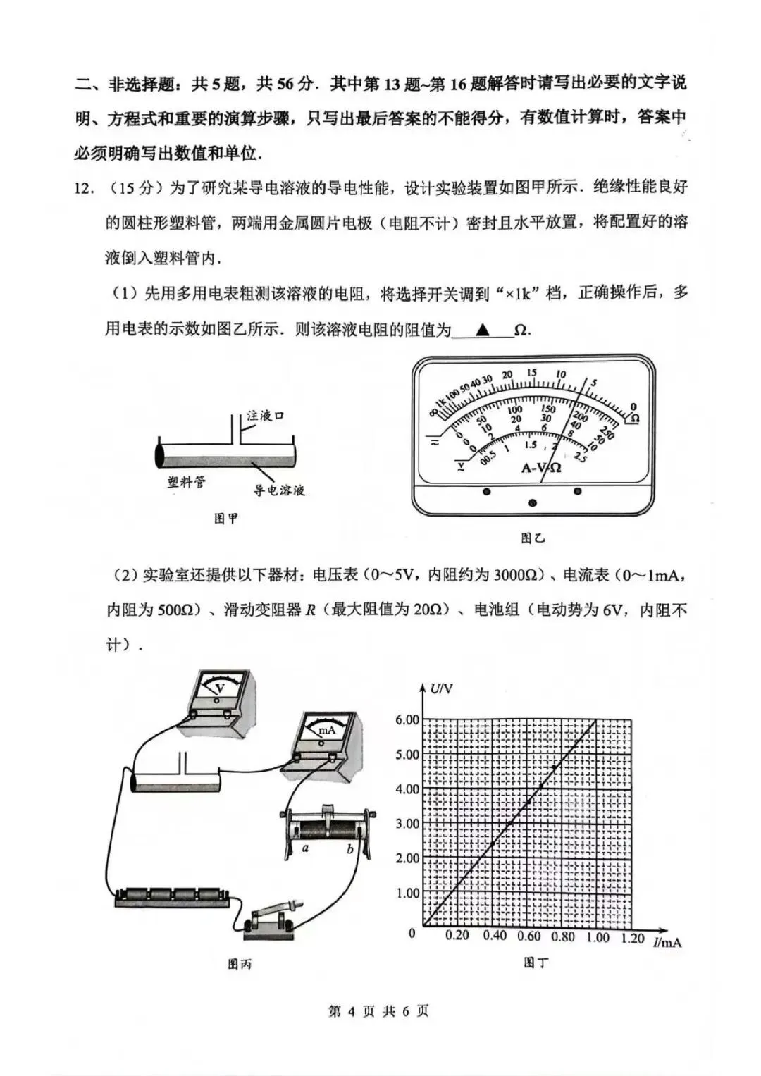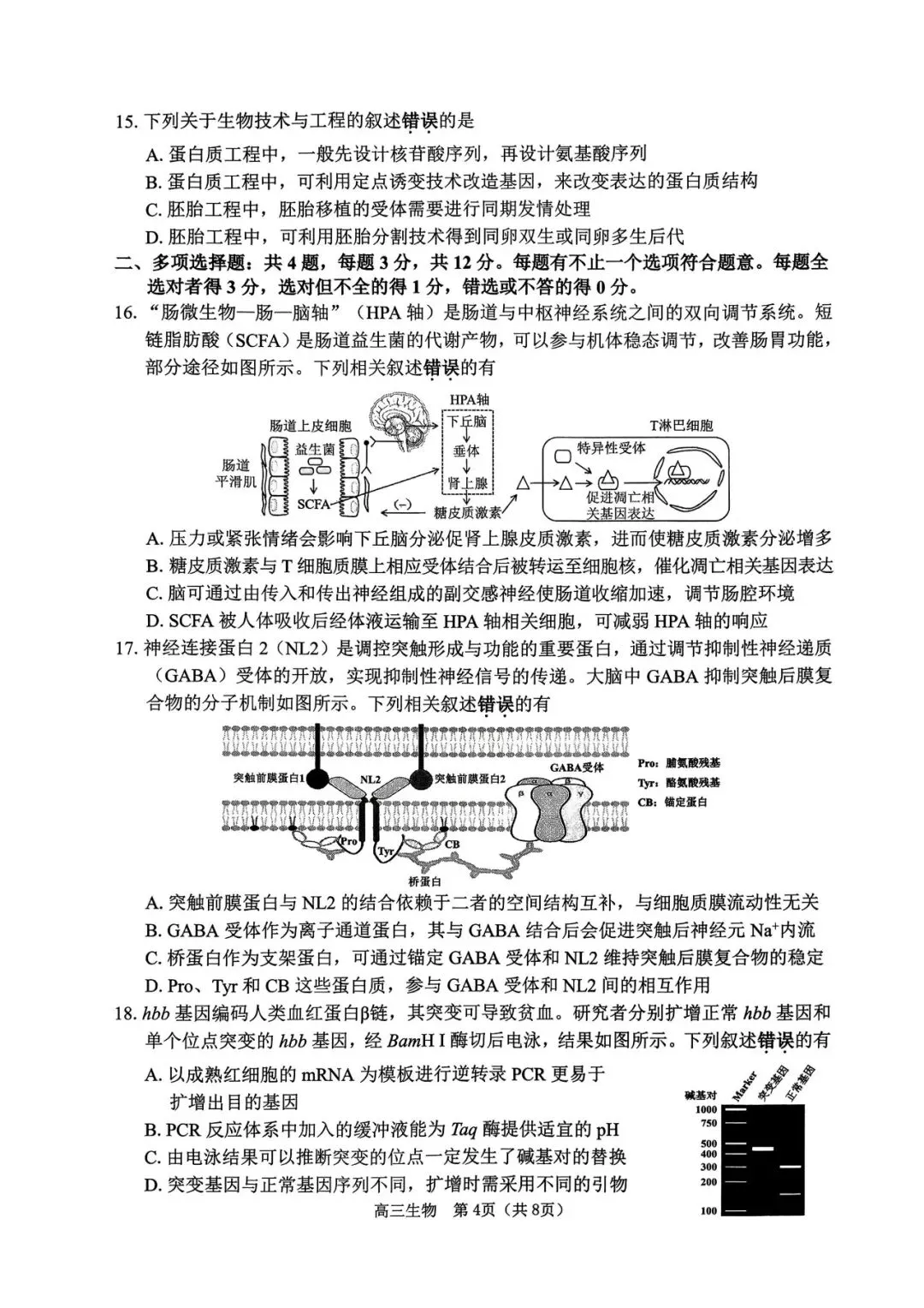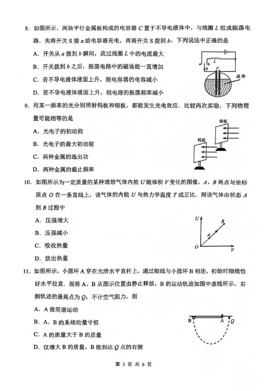 >【高三一模】26届徐州高三一模物理&化学&生物试卷+答案