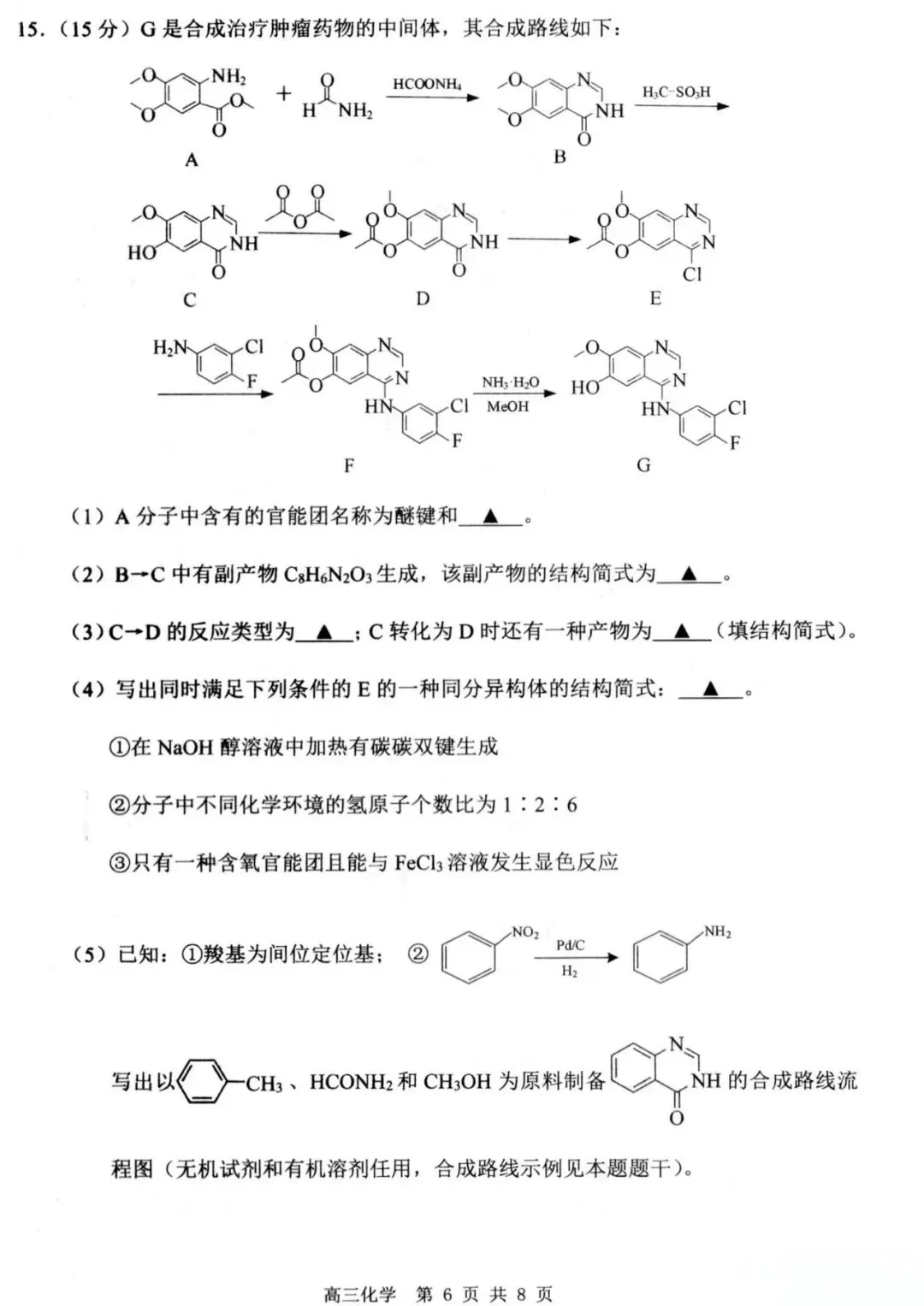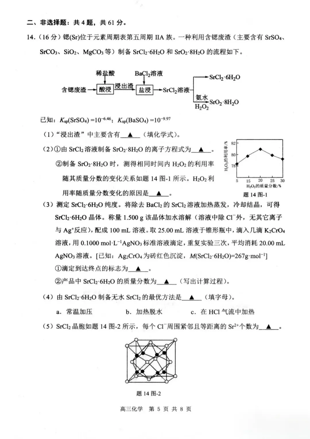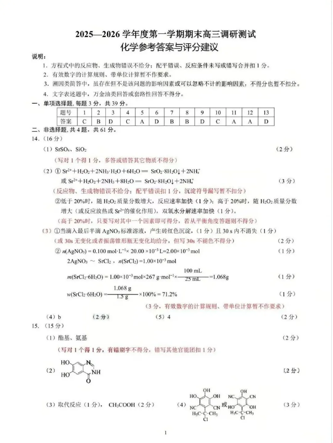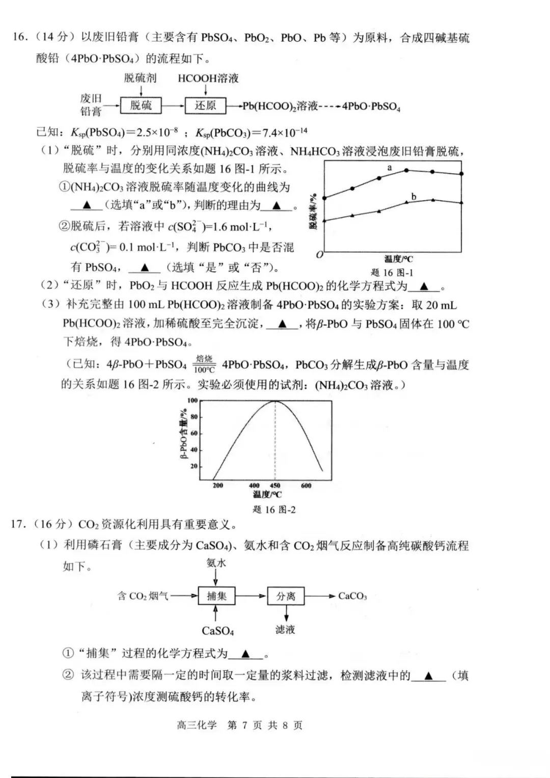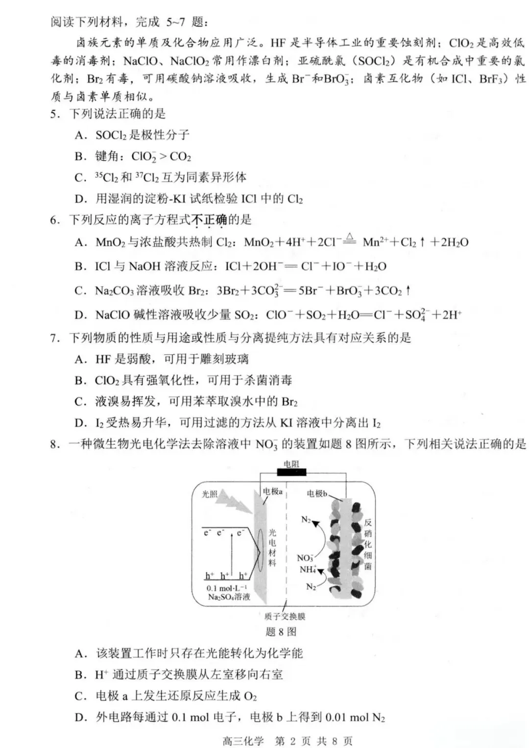 【高三一模】26届徐州高三一模物理&化学&生物试卷+答案