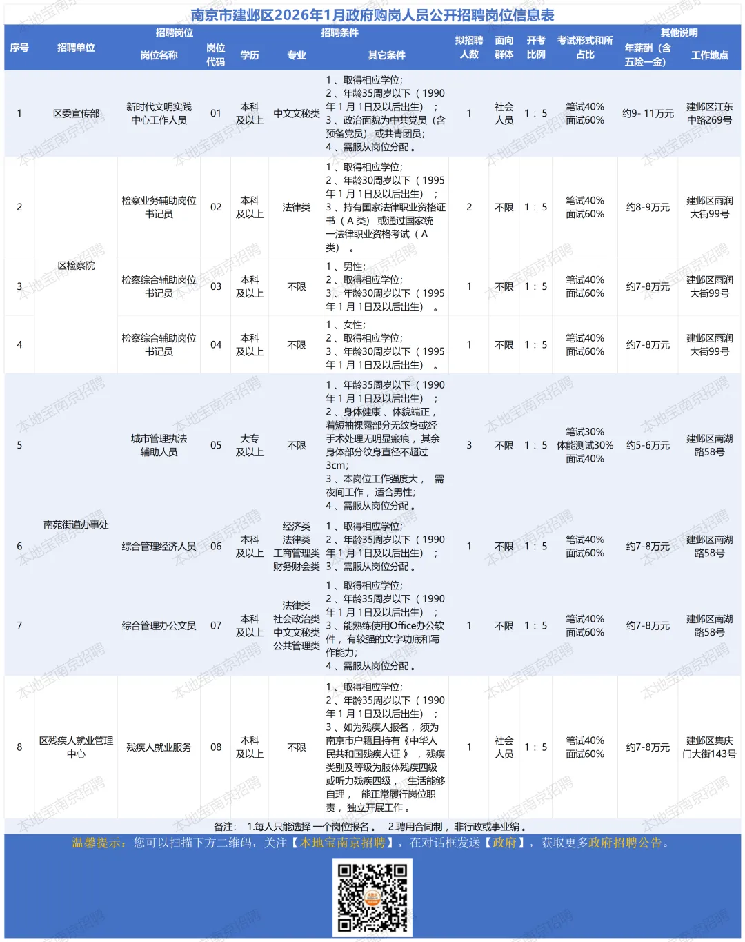 2.报名方式:网上报名。未按时上传完整准确材料的视为报名无效。报名网址:https://zk.sun-hrm.com/nindex/?ecode=njzfgzp请各位应聘人员密切关注众拓人才微信公众号、报名网站及个人邮箱,及时获取最新信息及后续相关通知。