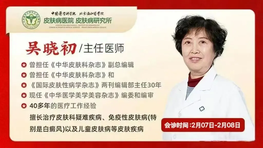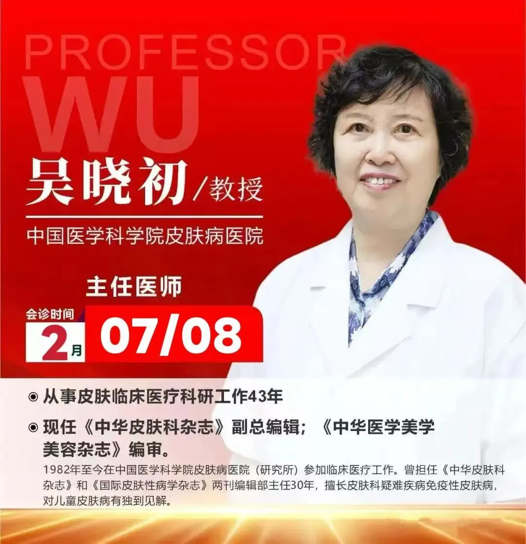 【专家会诊预告】2月07/2/08日 南京皮研所(中国医学科学院) 吴晓初教授公益义诊,请大家提前预约!