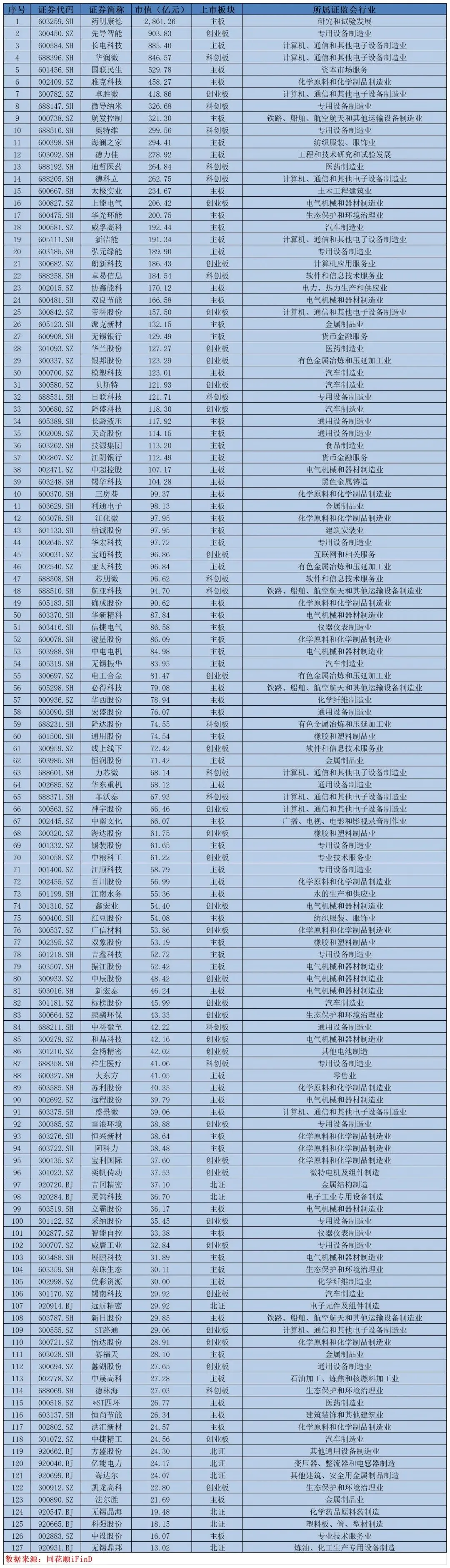 市场数据—苏州、无锡、常州上市公司市值排名