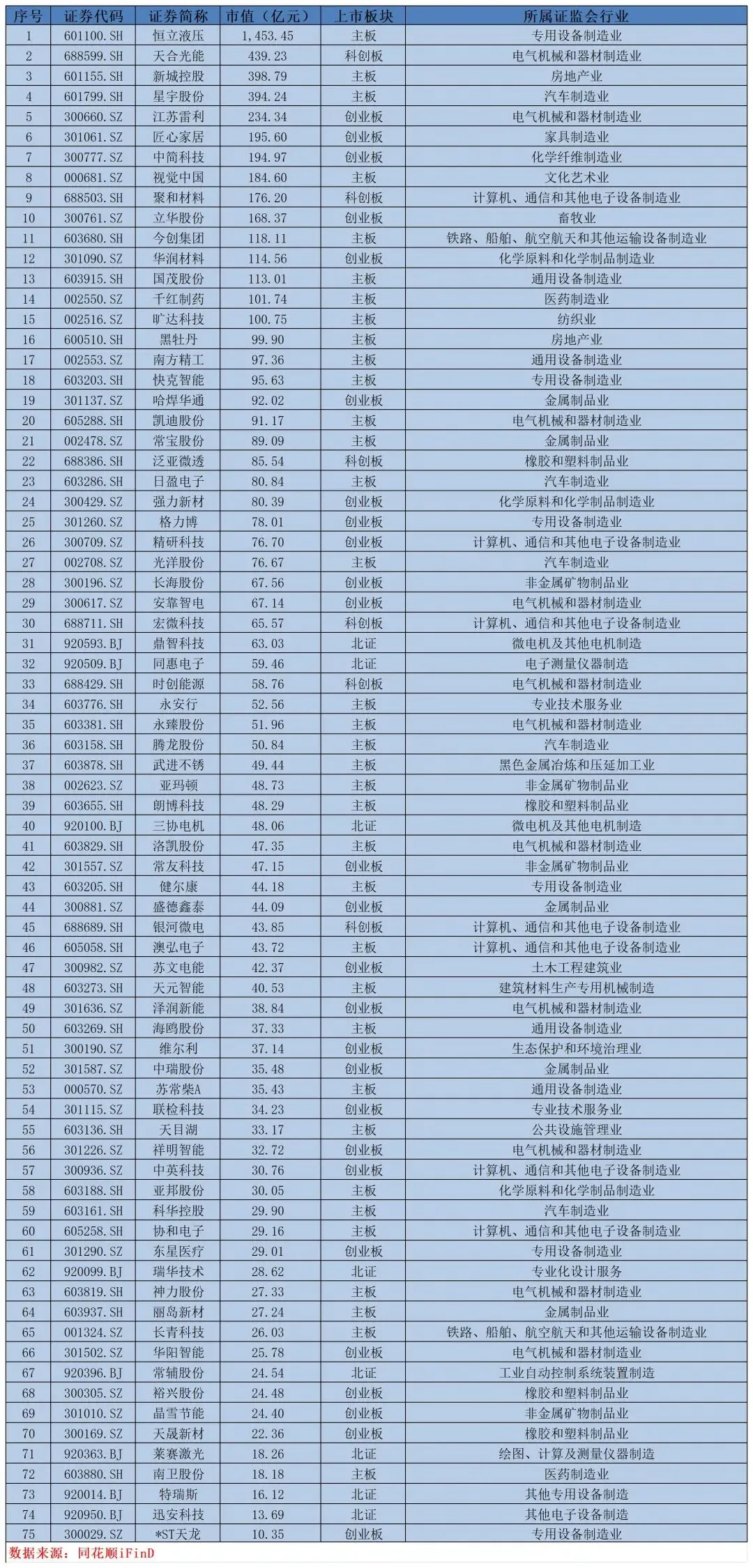>市场数据—苏州、无锡、常州上市公司市值排名