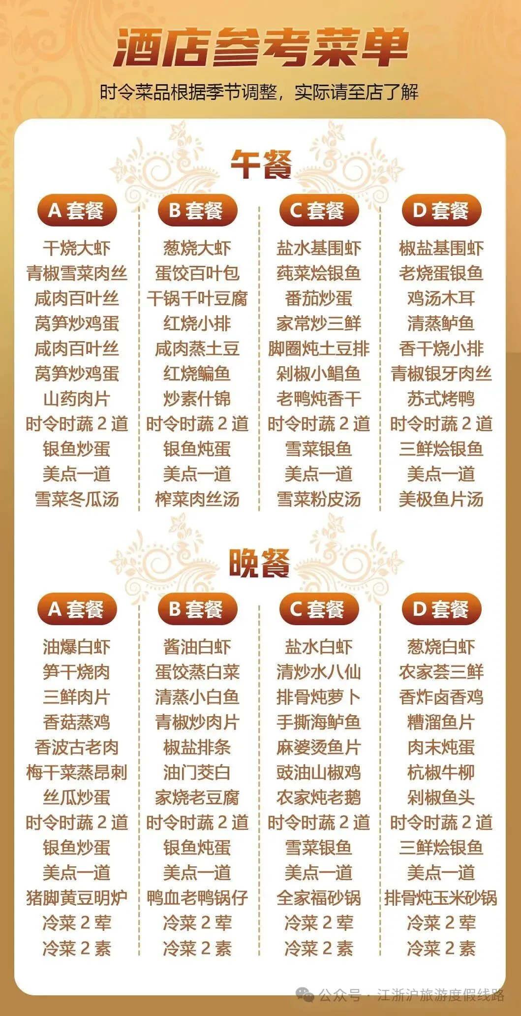 用餐菜单仅供参考,不指定菜单,敬请知晓!