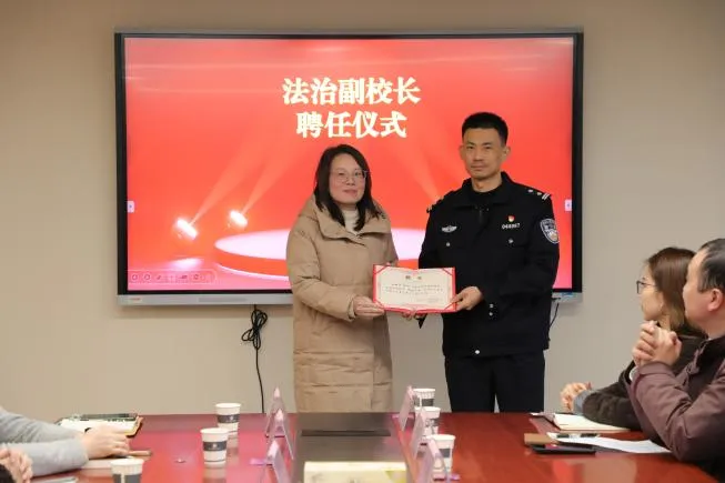 活动在庄重而热烈的氛围中拉开帷幕。首项议程为法治副校长与心理副校长聘任仪式。李琼校长现场为东沙湖派出所教导员张豪颁发法治副校长聘书,俞增荣副校长为广济医院曹阳医生颁发心理副校长聘书。这一举措旨在强化校园法治教育与心理健康专业支撑,筑牢学生成长的制度与专业屏障,受到与会各方高度认可。