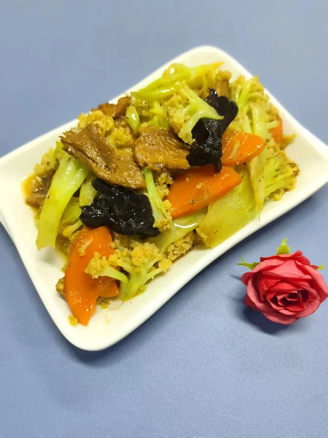 配料:肉片20克 菜花105克