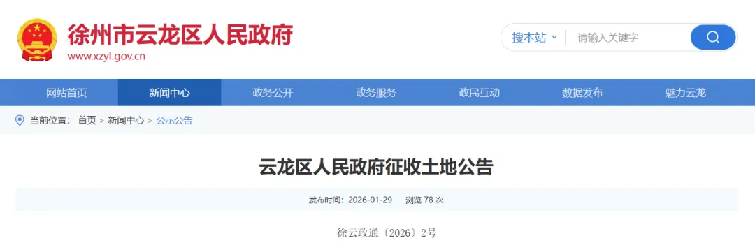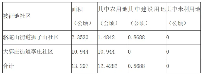 经省政府批准,同意将我区骆驼山街道、大郭庄街道的农民集体所有农用地12.4282公顷(其中耕地8.7749公顷)、未利用地0公顷转为建设用地并征收为国有,同时将位于云龙区骆驼山街道的农民集体所有建设用地0.8688公顷征收为国有(苏政地〔2025〕 570号)。根据《中华人民共和国土地管理法》 等法律法规的规定,现将批准的征收土地公告如下: