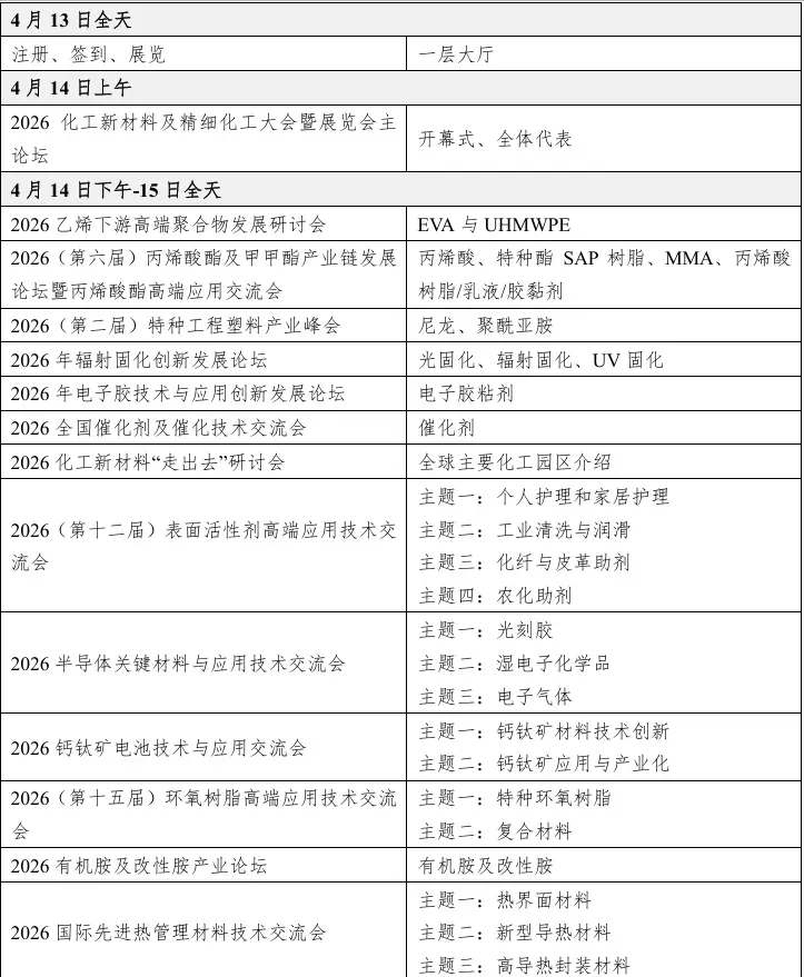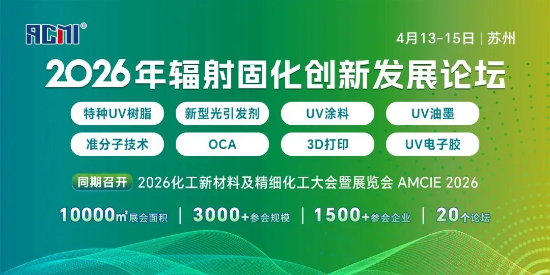 在绿色环保发展的大趋势下,辐射固化技术由于VOC零排放且高效环保,其产业在国内得以快速发展。为促进辐射固化产业协同发展,构建业内技术交流与资源对接的高效平台,我院拟联合多家单位,于2026年4月13-15日在苏州举办“2026年辐射固化创新发展论坛”。大会同期将举办“2026化工新材料及精细化工大会暨展览会(ACMIE2026)”。活动共设20场主题研讨会,主题涵盖辐射固化、电子胶、环氧树脂及有机胺、乙烯下游高端聚合物、特种工程塑料、丙烯酸及酯、甲基丙烯酸甲酯、半导体材料、氟材料、液冷、热管理材料、有机硅、高纯石英、气凝胶、表面活性剂等重点方向,参会规模3000人,参加企业1500家、展示面积10000平米。