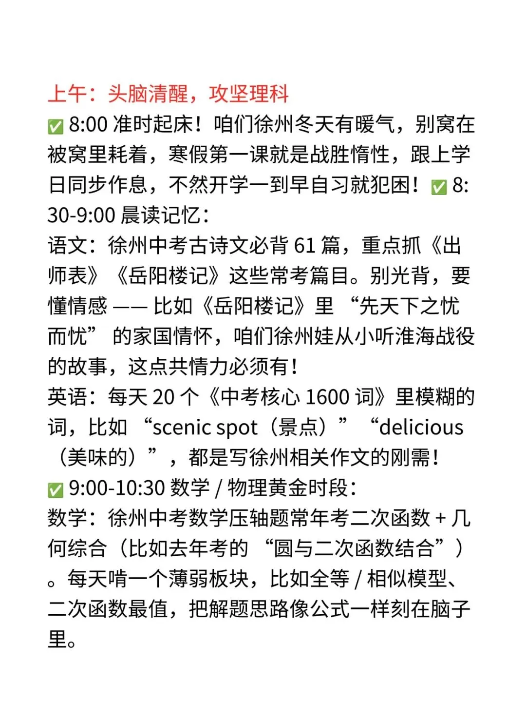 初三寒假是中考前的关键期,徐州家长记住,合理规划时间,高效复习,上午理科,下午文科,晚上运动复盘,家长多鼓励,助力冲刺!