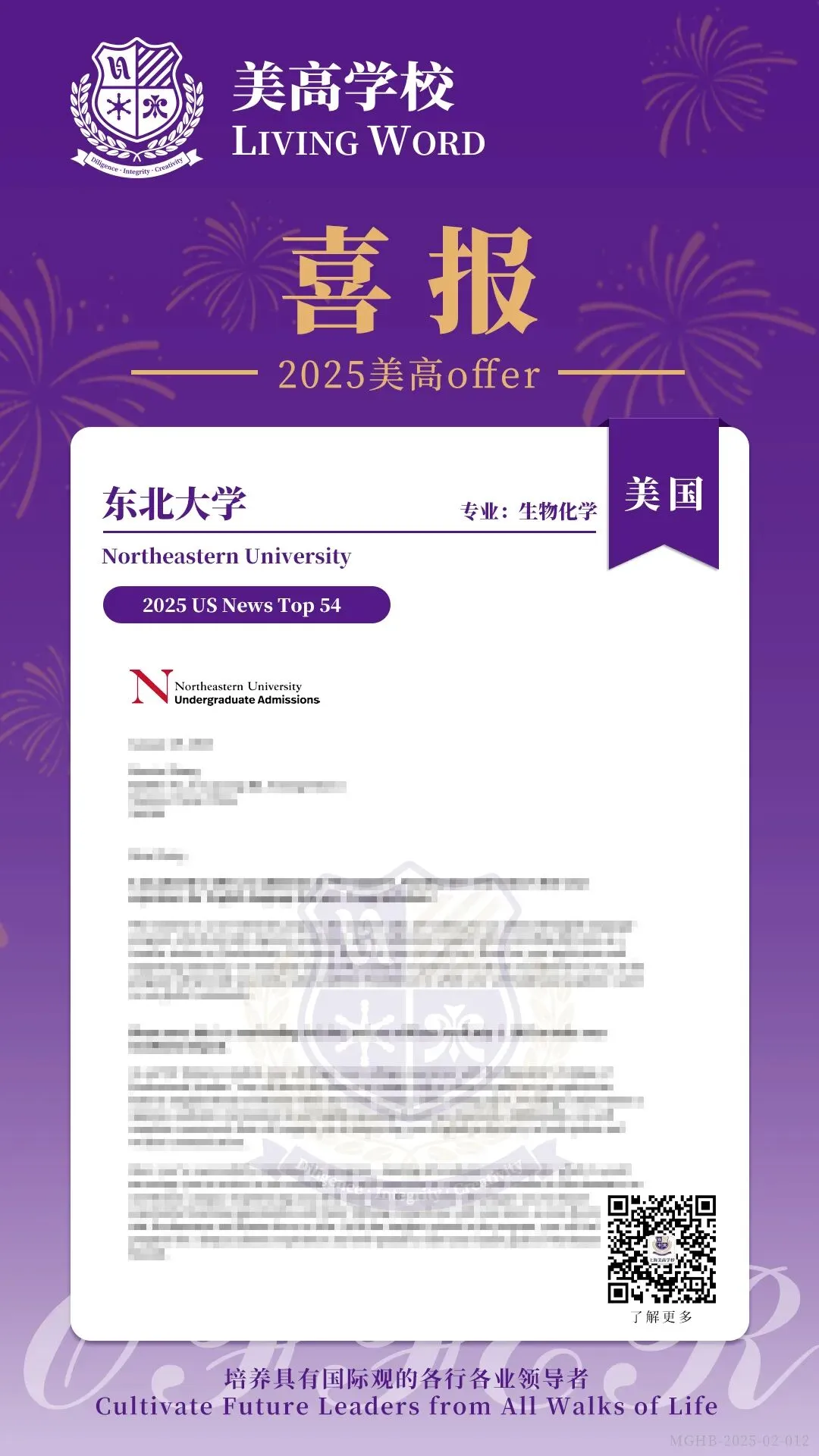 两位美高学子分别获得了美国东北大学(Northeastern University)和英国曼彻斯特大学(University of Manchester)的生物化学和生命科学专业录取通知书。这两所学府在全球生命科学研究领域享有极高的声誉,是探索生命奥秘的学术圣地。他们深入研究生命科学的复杂性,从分子层面探索生命的奥秘,为未来的科研工作奠定坚实的基础。