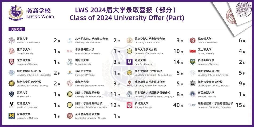 随着海外大学招生录取的不断推进,一个个世界名校offer敲响了LWS美高学校的大门,一波波激动人心的offer纷至沓来!
